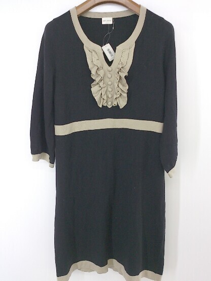 ◇ MELROSE メルローズ ウール ニット 七分袖 膝丈 ワンピース ブラック レディース P