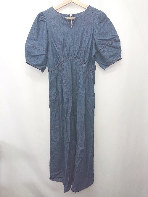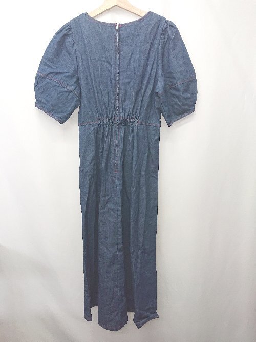 ◇ ⊂ ELENCARE DUE エレンカーレデュエ デニム 五分袖 膝下丈 ワンピース サイズF ネイビー系 レディース E