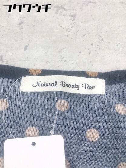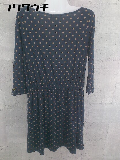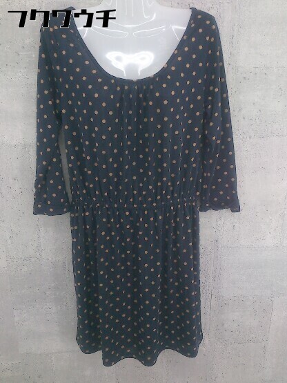 ◇ NATURAL BEAUTY BASIC 水玉 ドット 長袖 膝丈 ワンピース サイズM ネイビー レディース
