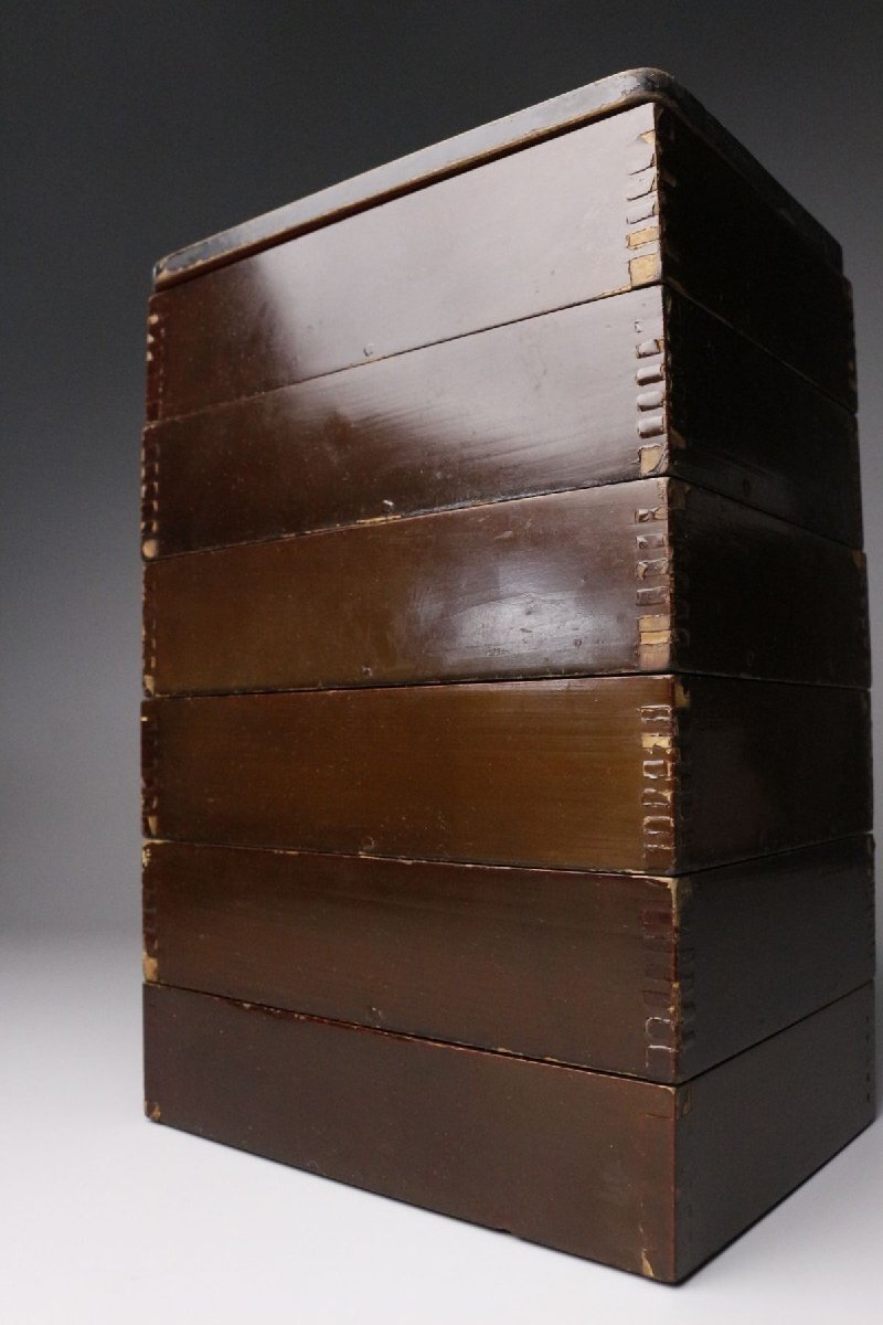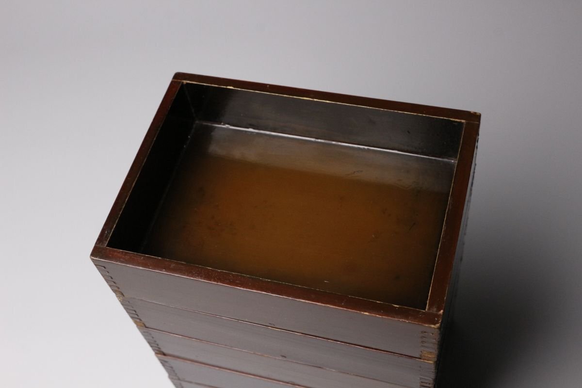 * * * 商品詳細 * * * ここでしか出逢うことのできない唯一の美をご紹介させて頂きます。 漆塗で仕上げられたシンプルな鍔箱のご紹介です。 六段と収納力もあり時代感もあるお品です。 是非お求めください。 ■サイズ/横16㎝×高24㎝×奥行11.5㎝ ■状態/スレ、キズ、漆にヒビ、剥げ、割れ、欠けがございます。 ※写真にてご確認、ご了承の上ご入札下さい。