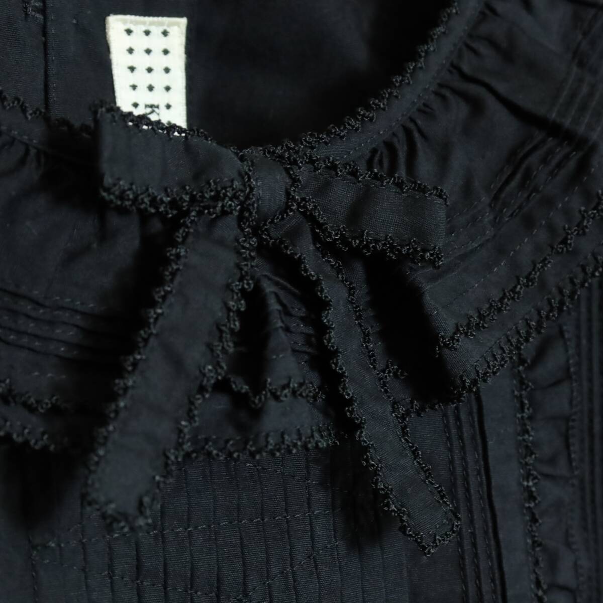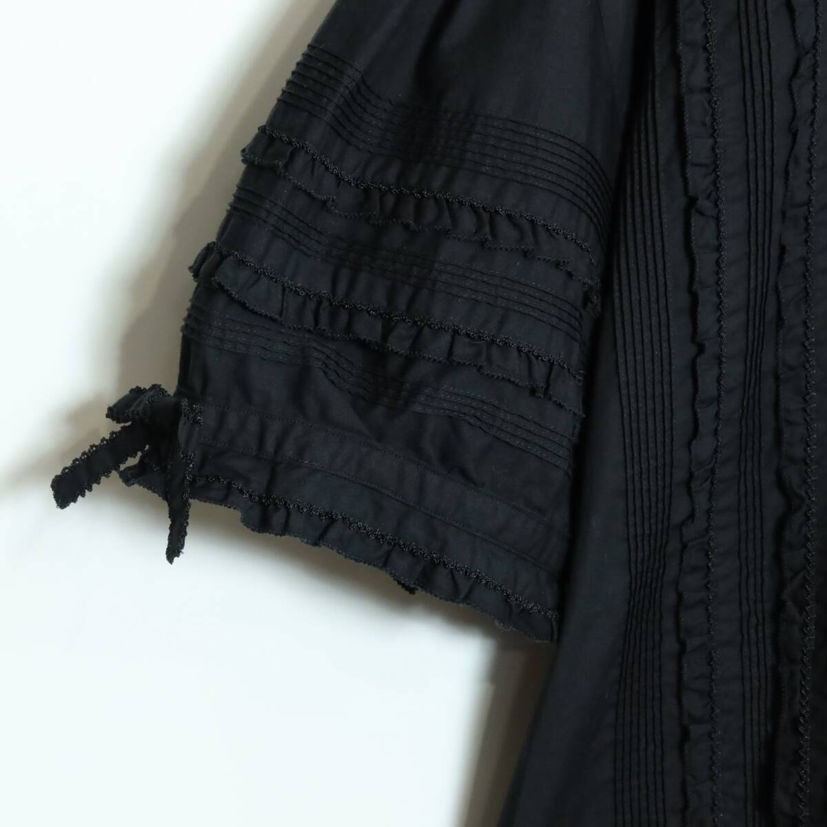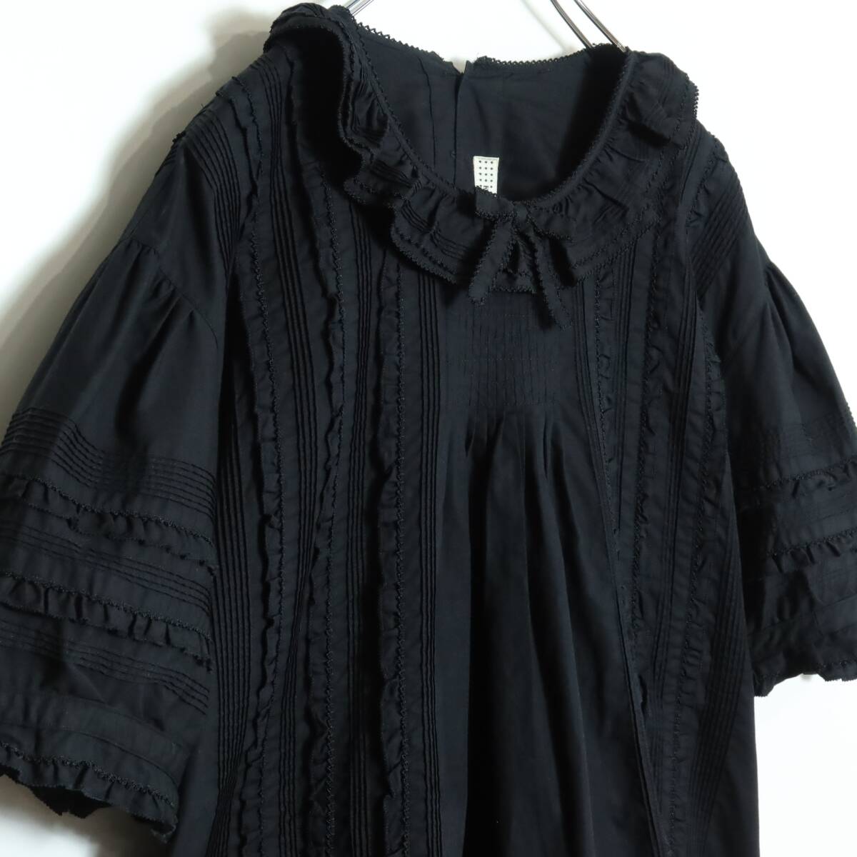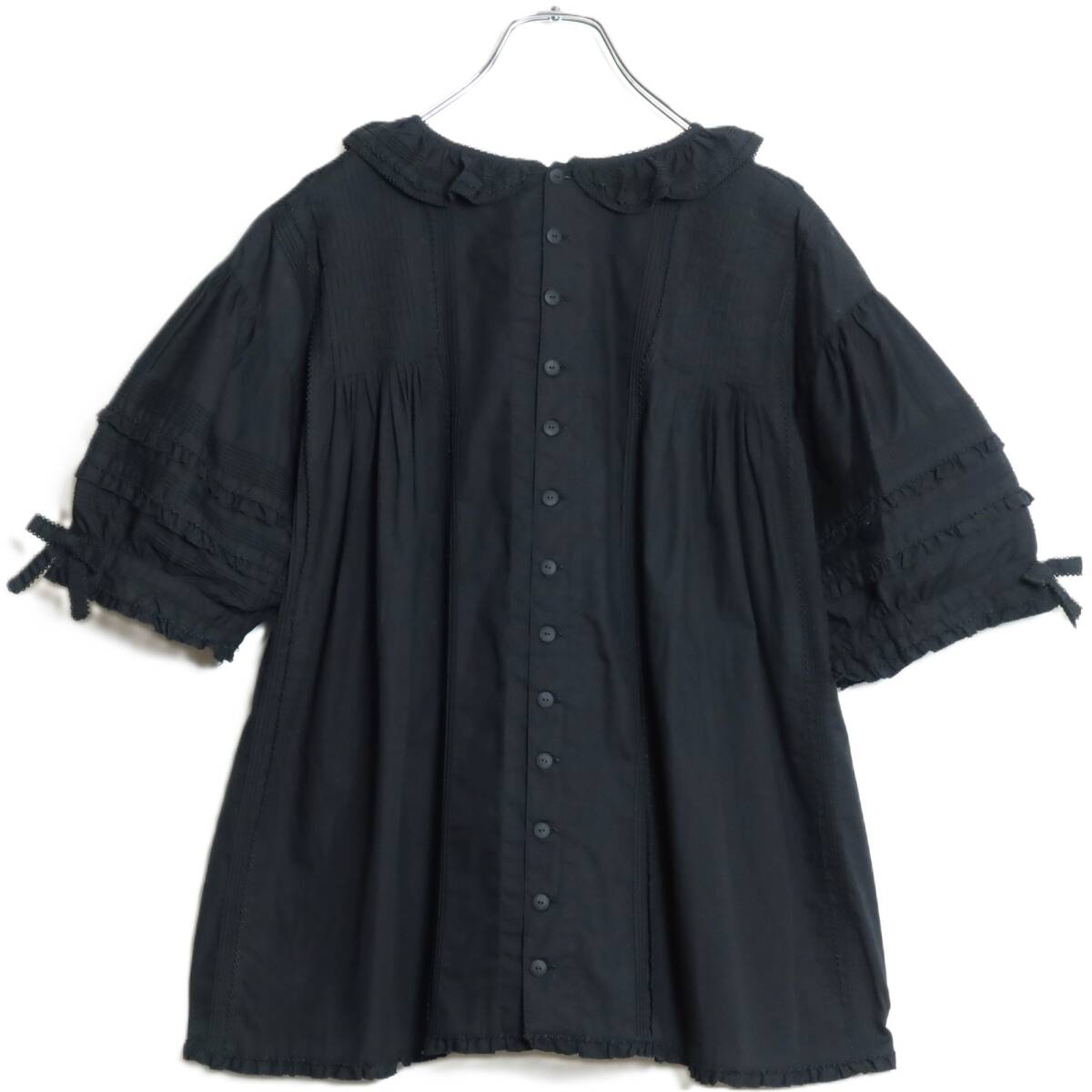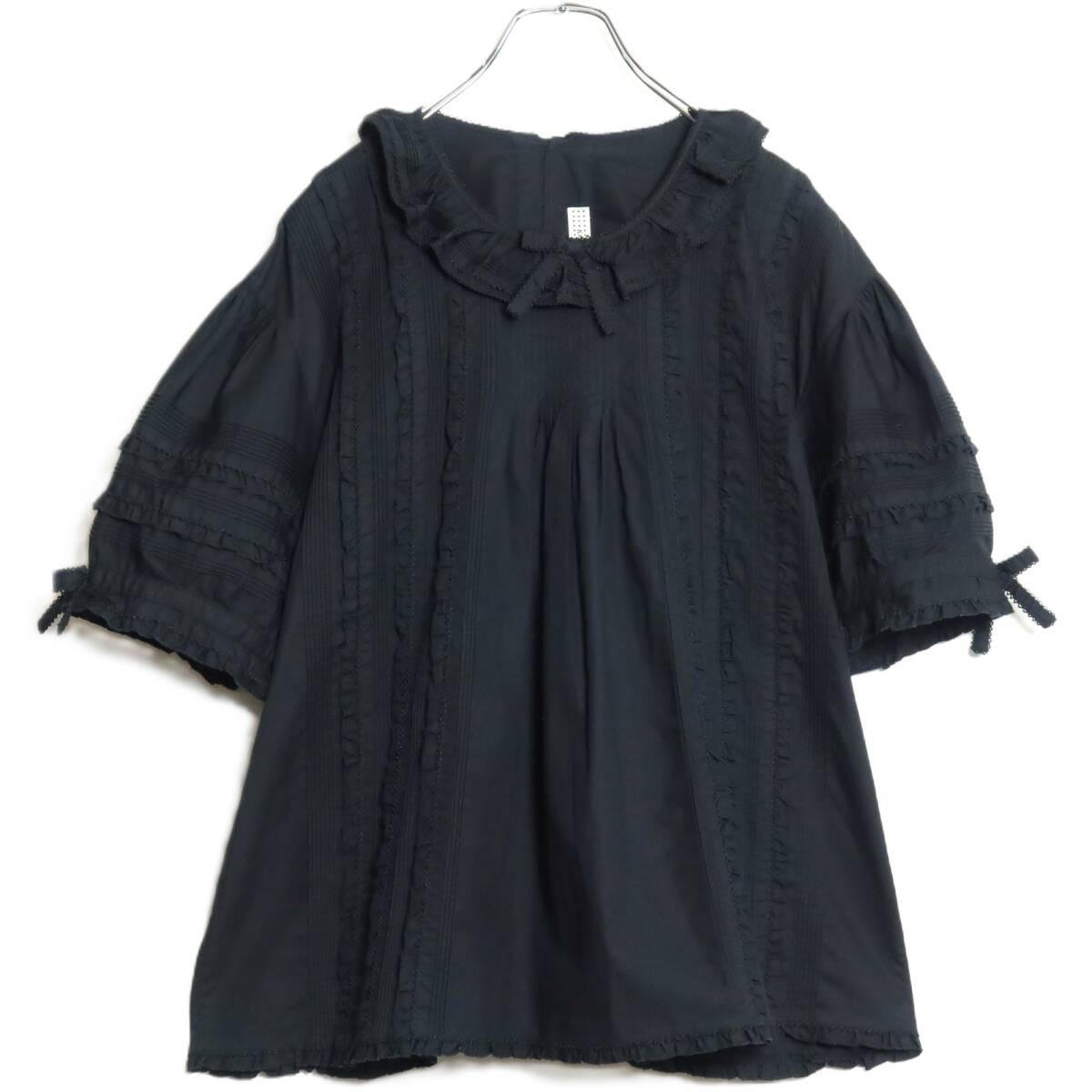 | 商品説明 | 【実寸約】肩幅50袖丈26バスト120着丈61(cm) 【サイズ表記】 なし。実寸をご参照くださいませ。 【素材】 綿100% 【状態】 使用感少なめの美品 【デザイン】黒系 フリル襟が大人可愛い半袖ブラウスです。 タック入りのふんわりフォルム♪ ピコレースや共布リボン、ピコレースなど、定番の可愛い飾りが満載♪ これ一枚でもレイヤードでもロマンティックコーデに大活躍するアイテムです。 薄手/無地/バックオープン |
