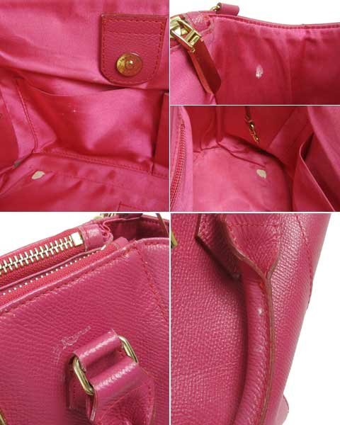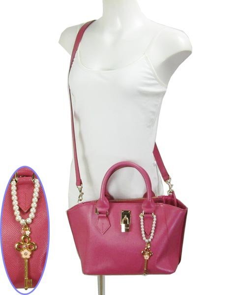 | 華やかなピンクのキュートなバッグ。取り外し可能なショルダーストラップ、鍵型チャーム、鍵など気分によってカスタマイズできます。収納力があり、お荷物多めの方にもおすすめです。内側ファスナーポケット2つ、小さいファスナーポケット1つ、スリットポケット1つ、携帯電話ポケット1つ。 |