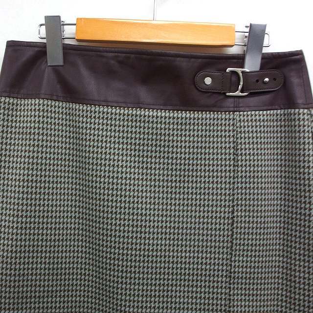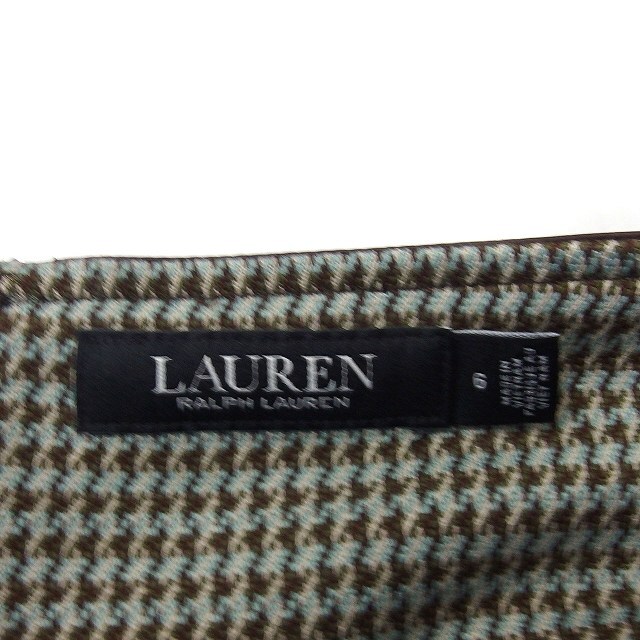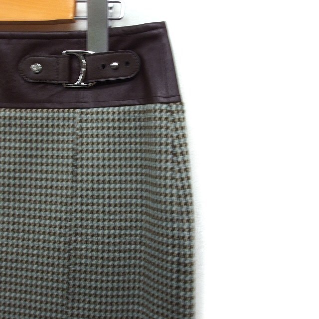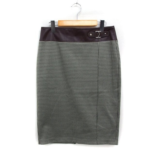ローレンラルフローレン LAUREN RALPH LAUREN 国内正規品 千鳥柄 タイトスカート ひざ丈 スリット ウエストフェイクレザー 6 グリーン系 /FT44 レディース