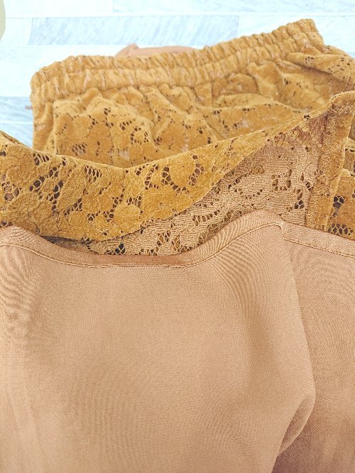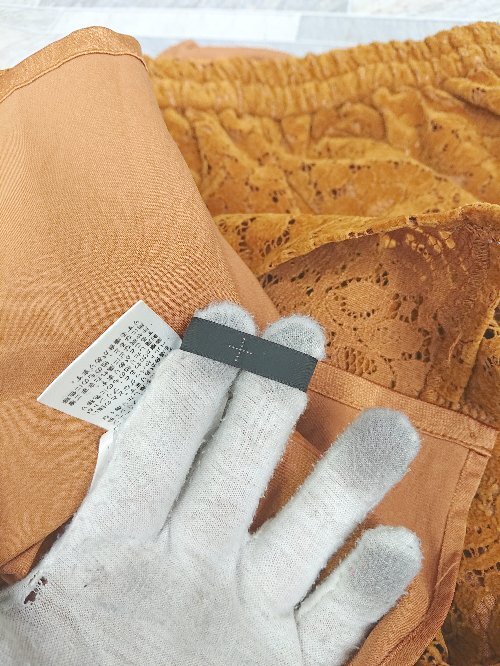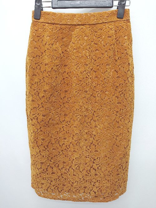 ◇ KBF+ ケービーエフ プラス フロッキーレース 膝下丈 タイト スカート サイズOne ブラウン レディース P