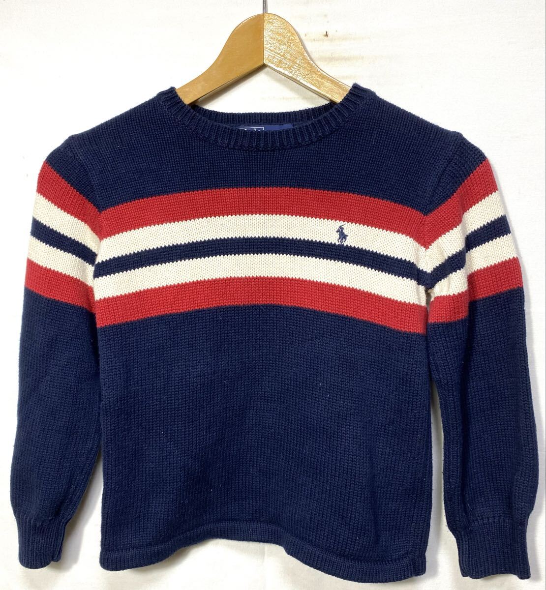 ■ 子供用 日本製 Polo by Ralph Lauren ポロ ラルフローレン ボーダー柄 コットン セーター サイズ6 ネイビー アメカジ トラッド ポニー■