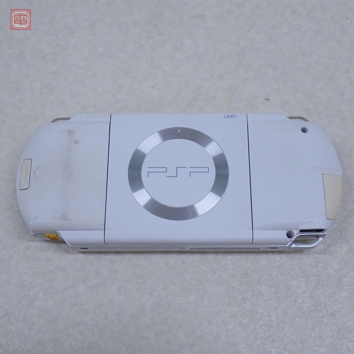 動作品 PSP プレイステーションポータブル 本体のみ PSP-1000 セラミックホワイト ソニー SONY ■本体にスレ、キズ、汚れ、ヤケがあります。 ■上記以外は未チェックです。 ■動作確認で使用したソフト等は付属しません。 ■写真のものが全てです。付属物の有無や状態については写真からご判断ください。 ■付属物については細かいチェックはしておりませんので、万が一、欠品があったり余計な物が入っていたとしてもご了承ください。 ■商品到着後、当店の保証期間中は、商品及び箱や取説、付属品などを1つでも廃棄や破損をしないようにお願い致します。廃棄や破損をした場合、商品に問題があった場合でも対応や返金などの対処ができなくなります。 ■商品によりますが、発売されてから10年以上経過している中古品である事をご理解頂いた上でご入札をお願い致します。なお、新品や美品、また特記事項がある場合は別途明記します。 | |||