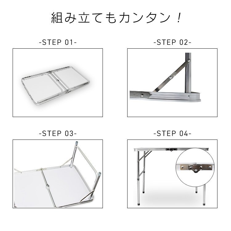 サビに強いアルミを使用。天板には防水加工が施されています。 テーブルは2段階の高さ調節ができ、お好みのスタイルに合わせてお使い頂けます。 |