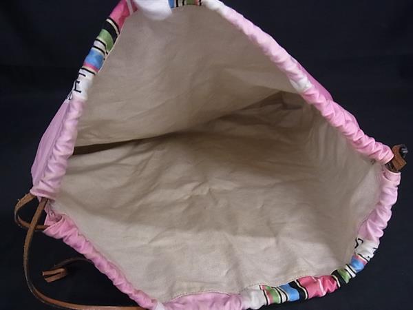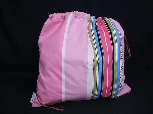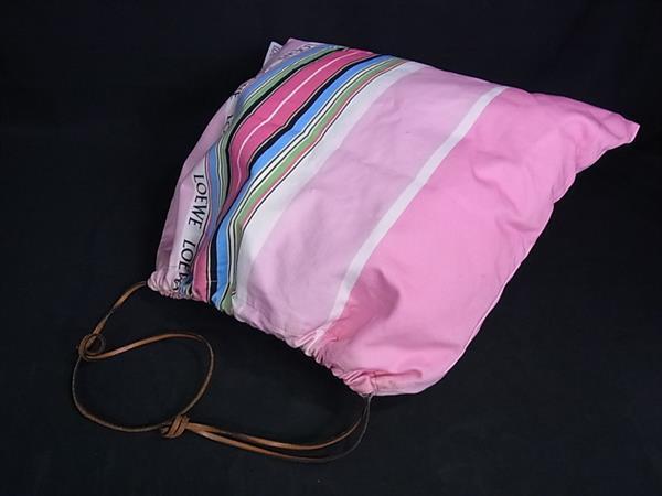 1円 LOEWE ロエベ キャンバス 巾着バッグ マルチポーチ レディース ピンク系×マルチカラー BQ2787
