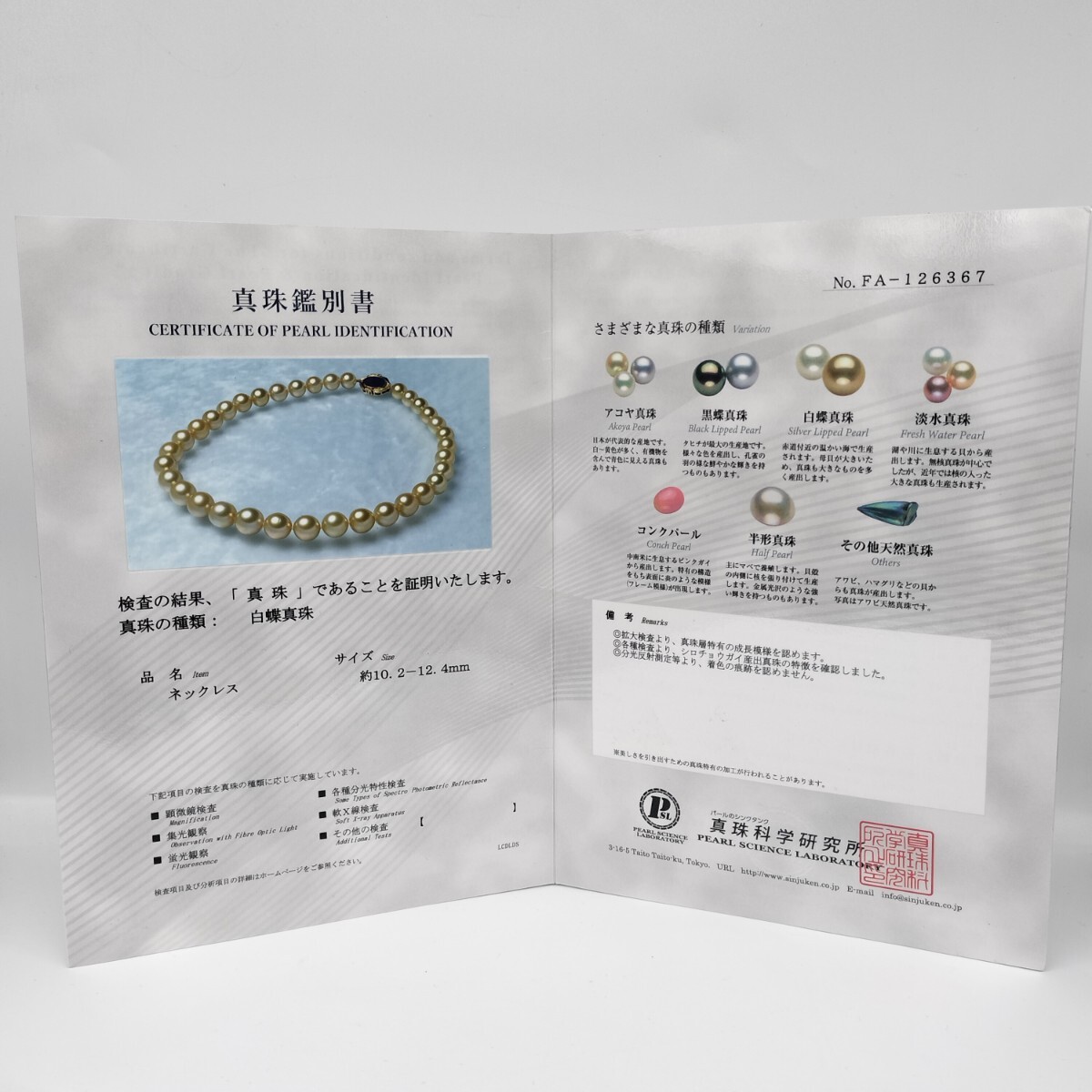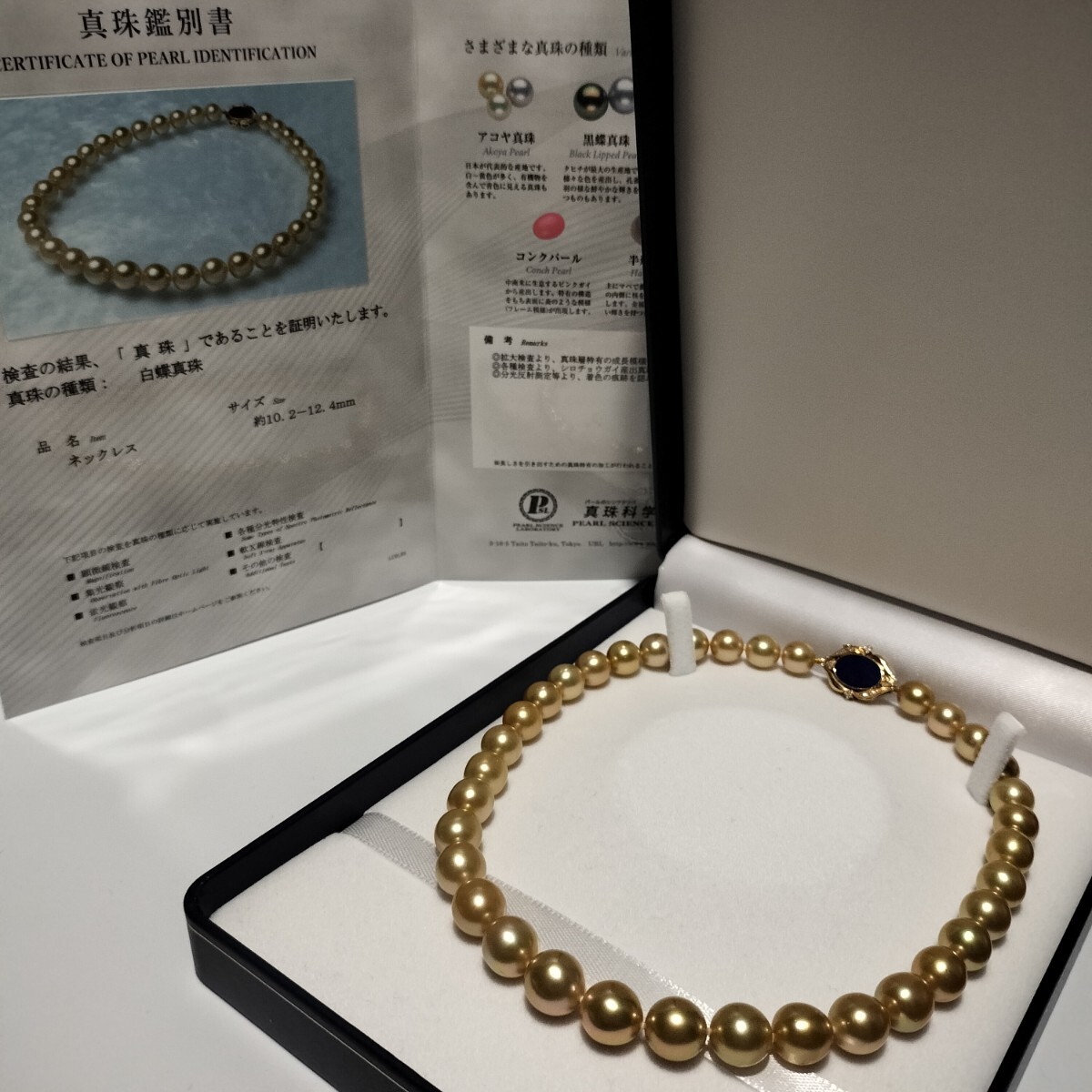 ・付属品ネックレス+真珠科学研究所鑑別書+ケース付き