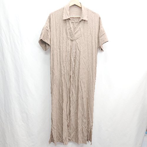 ◇ ⊂ nano universe ナノ ユニバース 半袖 ロング ワンピース サイズF キャメル系 レディース E
