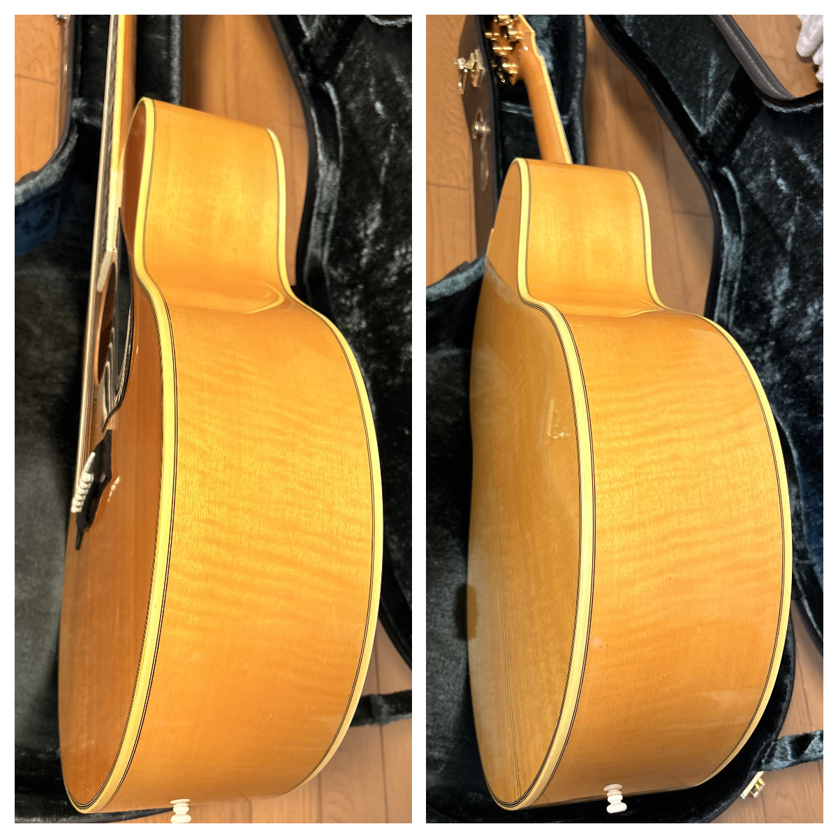 ※サイド・バックは、メイプルと同じ楓系の木材で、芸術品のような木目が美しいです。