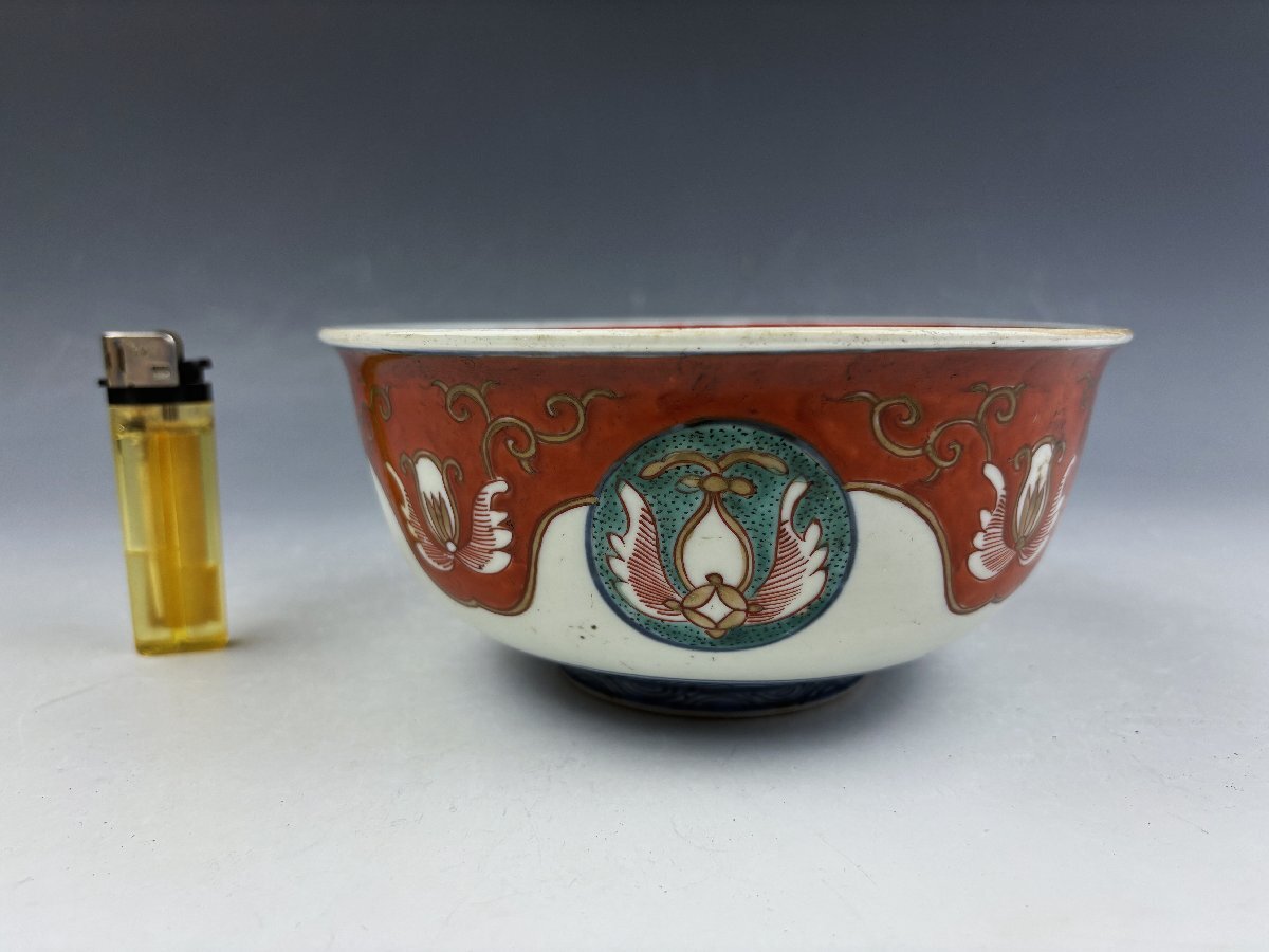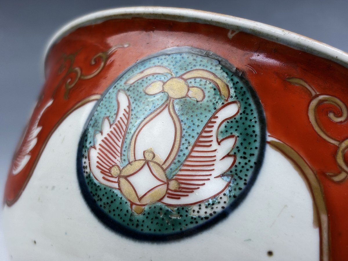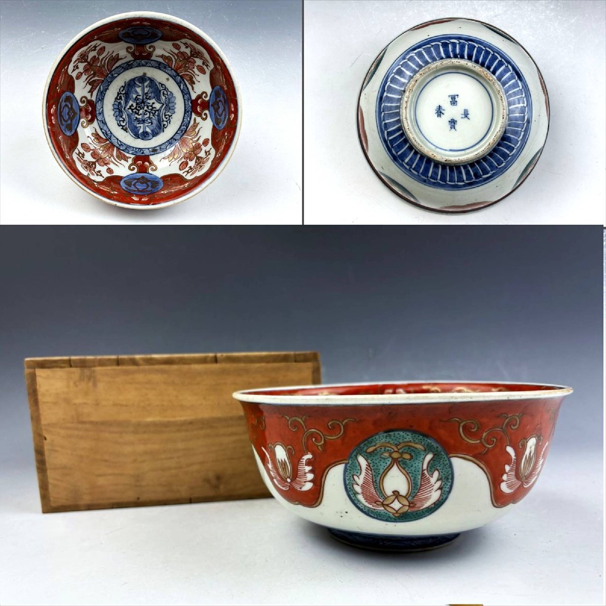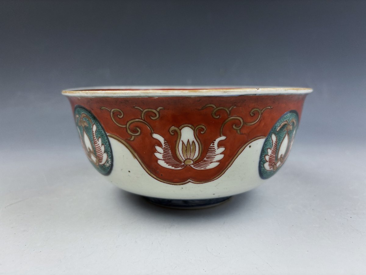 古伊万里 染錦金彩 赤絵 草花文 六寸中鉢 菓子鉢 盛鉢 深鉢 無傷 懐石 和食器 茶道具 時代物 古陶磁器 古美術骨董品 GNT115
