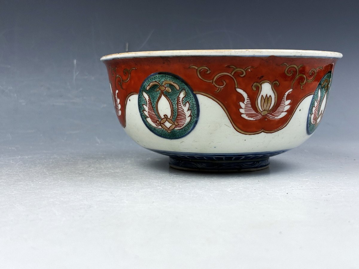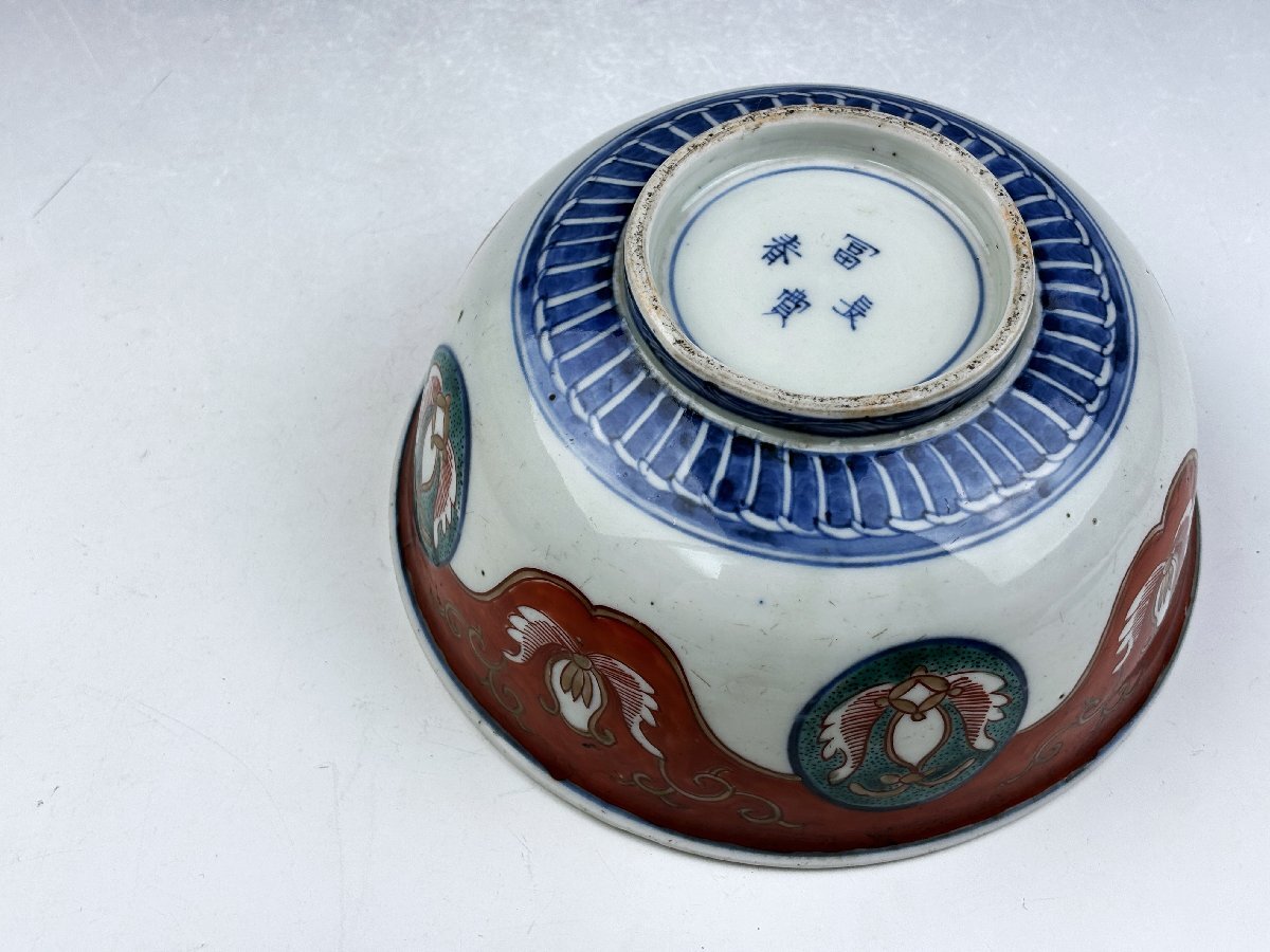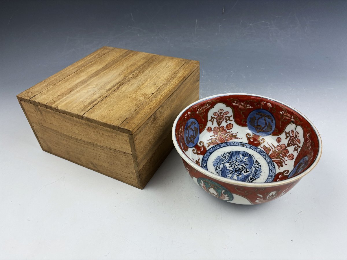 古伊万里 染錦金彩 赤絵 草花文 六寸中鉢 菓子鉢 盛鉢 深鉢 無傷 懐石 和食器 茶道具 時代物 古陶磁器 古美術骨董品 GNT115【遅日亭】