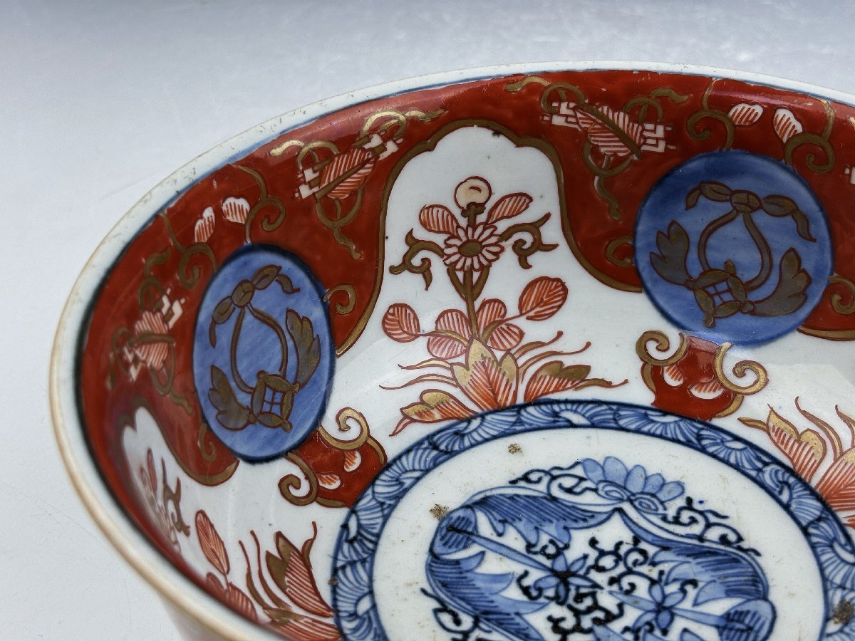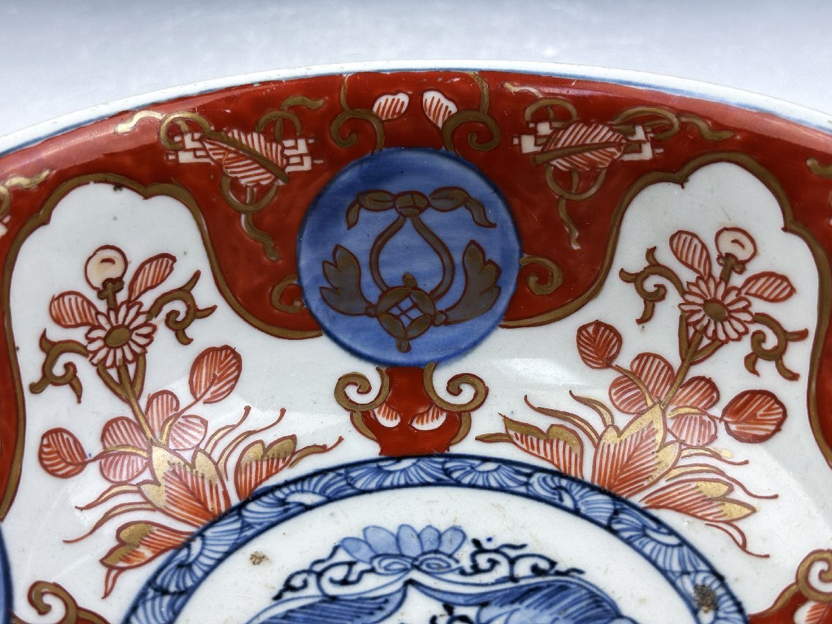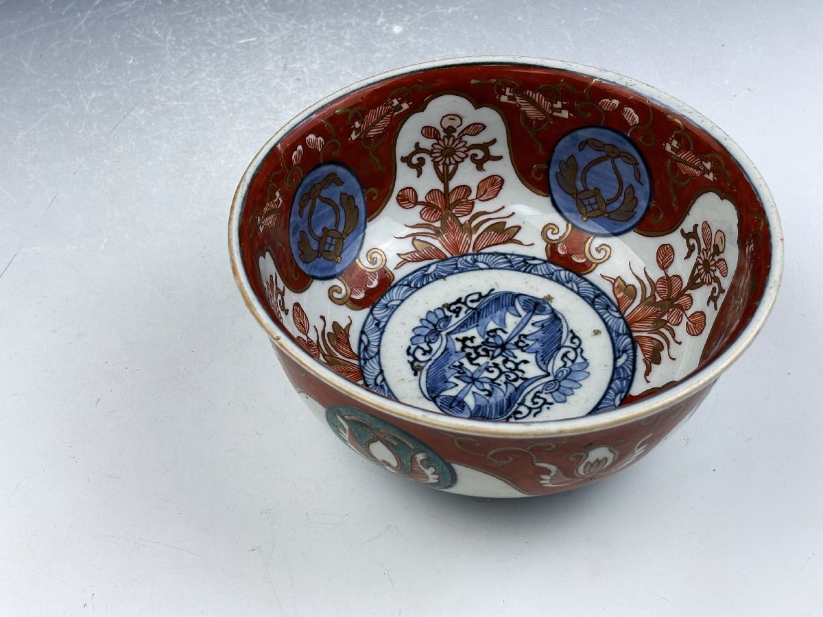 古伊万里 染錦金彩 赤絵 草花文 六寸中鉢 菓子鉢 盛鉢 深鉢 無傷 懐石 和食器 茶道具 時代物 古陶磁器 古美術骨董品 GNT115【遅日亭】