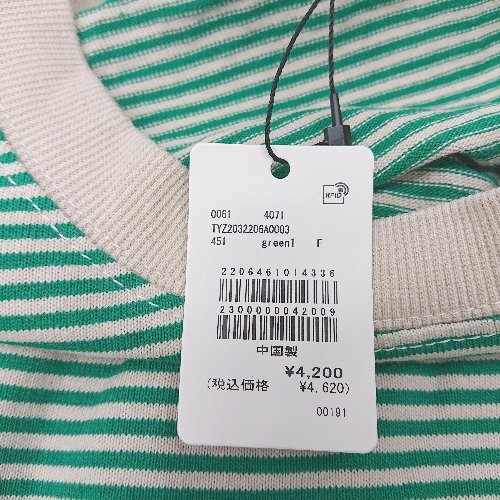 ◇ ⊂◎●未使用● CIAOPANIC TYPY ボーダー柄 長袖 Tシャツ サイズF グリーン アイボリー レディース E