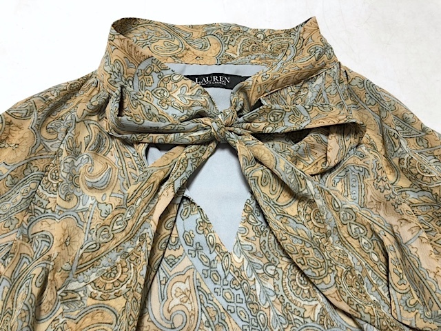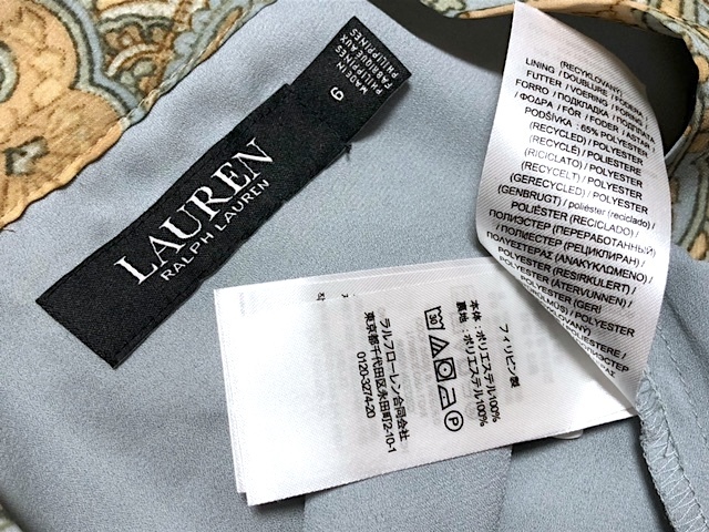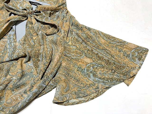 ☆二点落札で送料無料!2A18 【ほぼ未使用】ラルフローレン ブラックレーベル リボンタイ ペイズリー シフォン ロングワンピース 6M