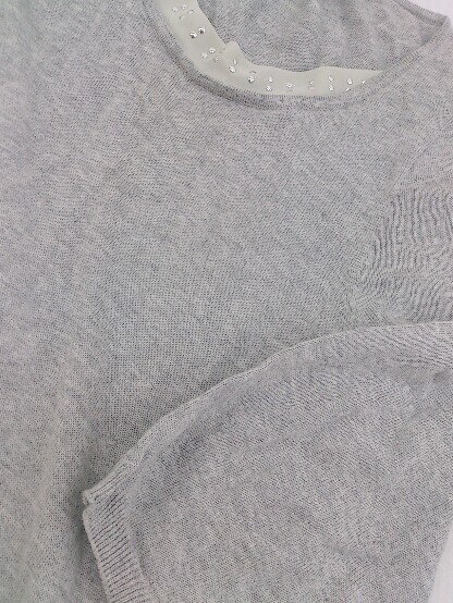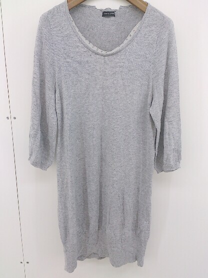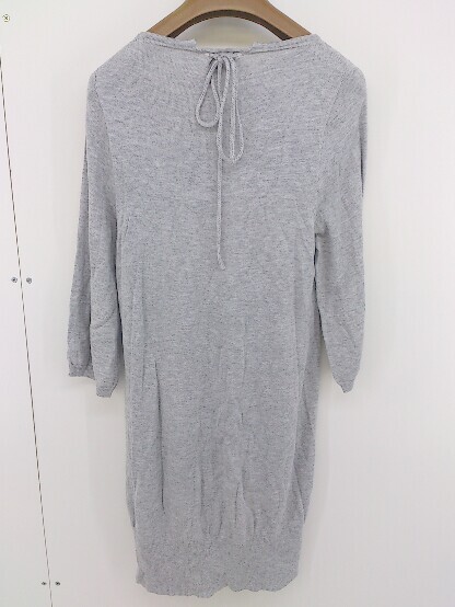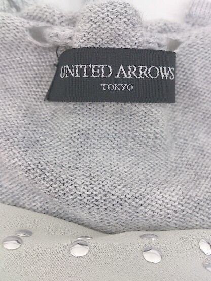 ◇ UNITED ARROWS ユナイテッドアローズ リボン スタッズ 長袖 膝丈 ニット ワンピース グレー レディース