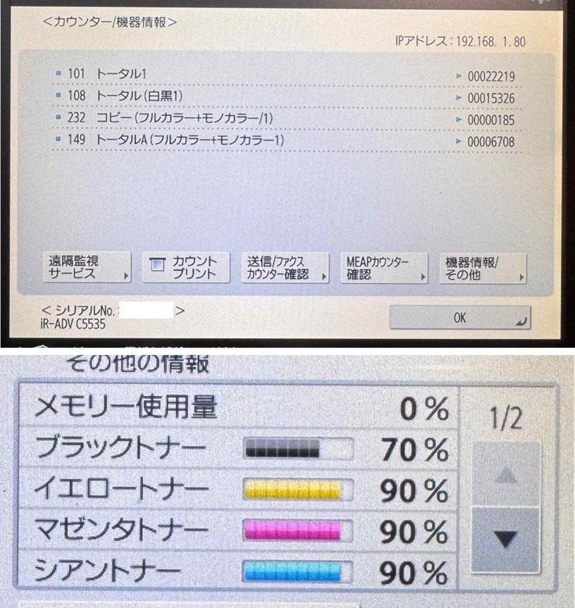 | カウンター | トータル: 22,219 枚 ※落札後発送前に動作確認を再度行いますので、カウンター・トナー残量の数値が多少変動します。ご了承下さい。 |