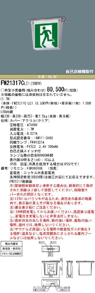 天井直付型 LED 誘導灯 片面型 一般型(20分間) 防湿型 防雨型  HACCP兼用 自己点検機能付 リモコン自己点検機能付 B級・BL形(20B形)