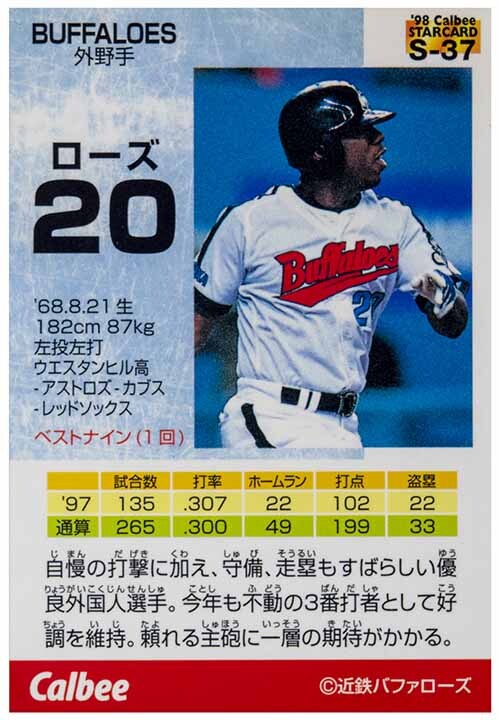 即決! 1998 カルビー スターインサートカード S-37 T. ローズ (OF) #20
