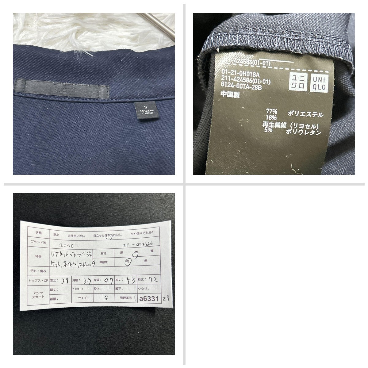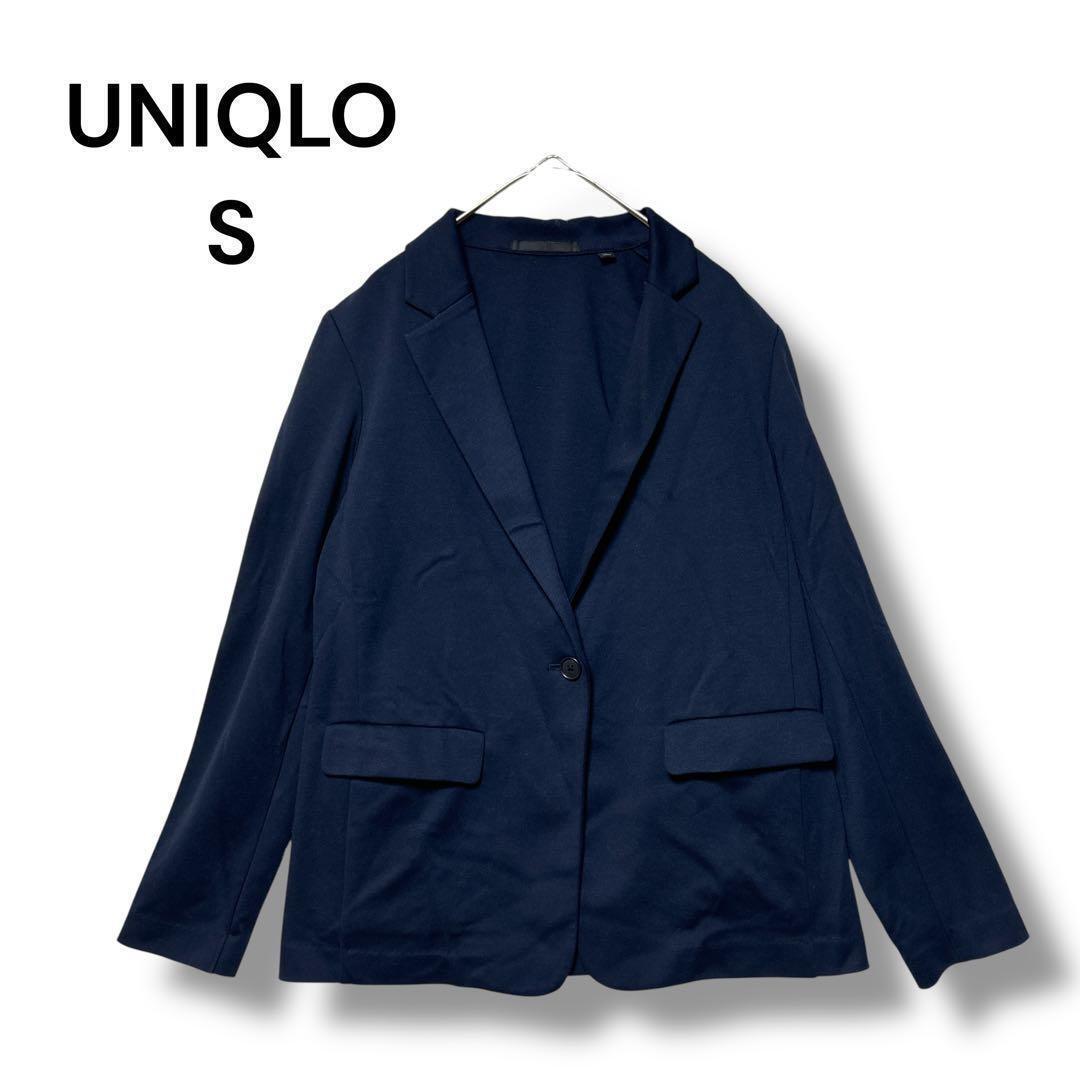 ユニクロ UVカットジャージージャケット S ネイビー ストレッチ 長袖 無地 704EE0