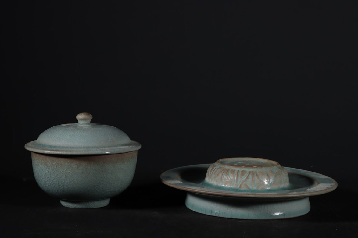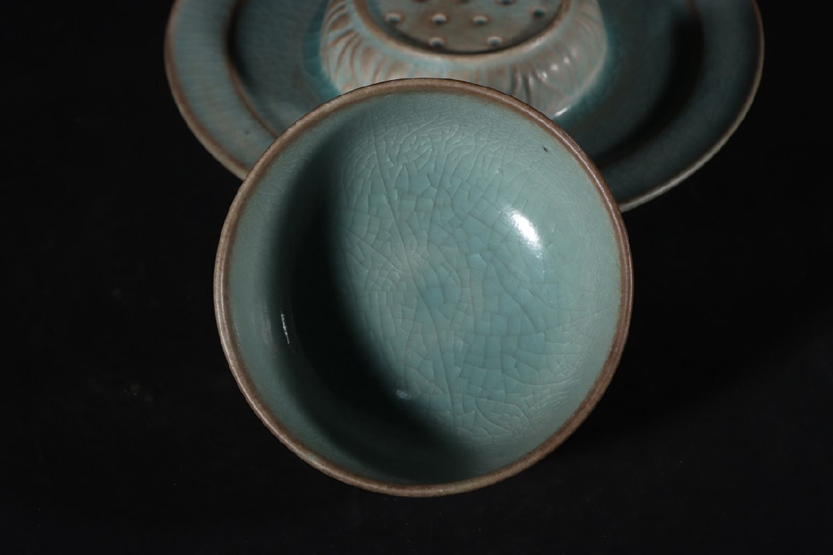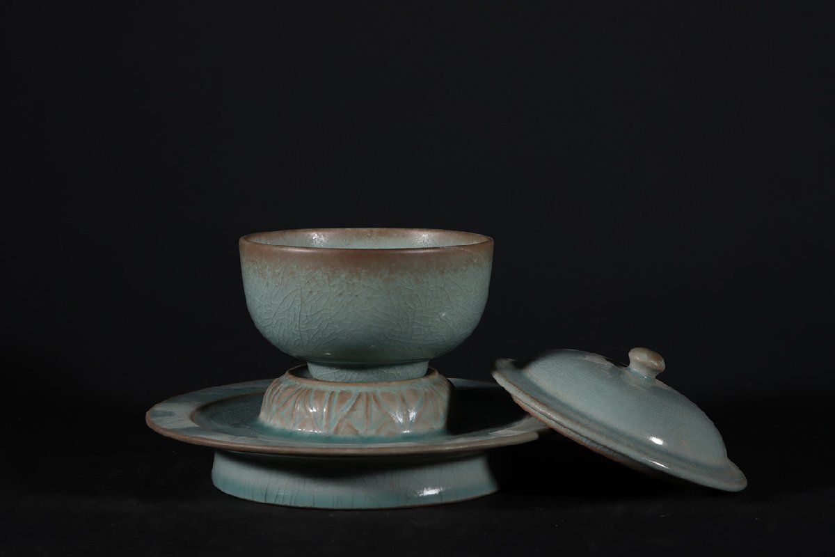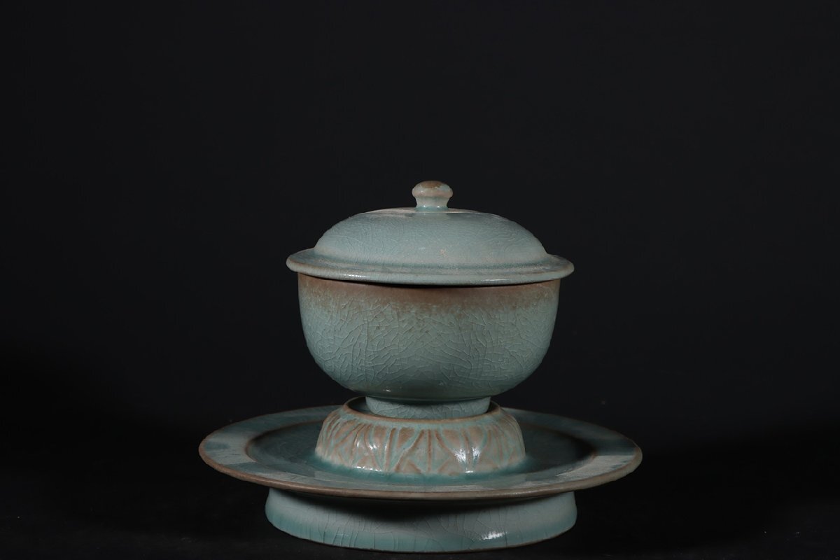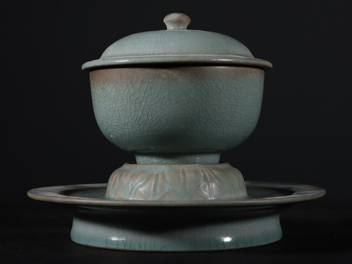 | ◇商品名◇ | ■大成美術■汝窯天青釉盞托セット 箱付き(検)宋時代 陶磁器 唐物 中国美術 骨董 古玩 176 | ||