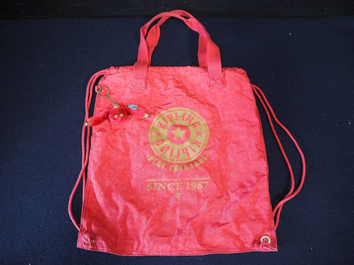 KIPLING キプリング ナップサック リュックサック レッド系 マスコット付 kipling バッグ バックパック ディパック トートバッグ