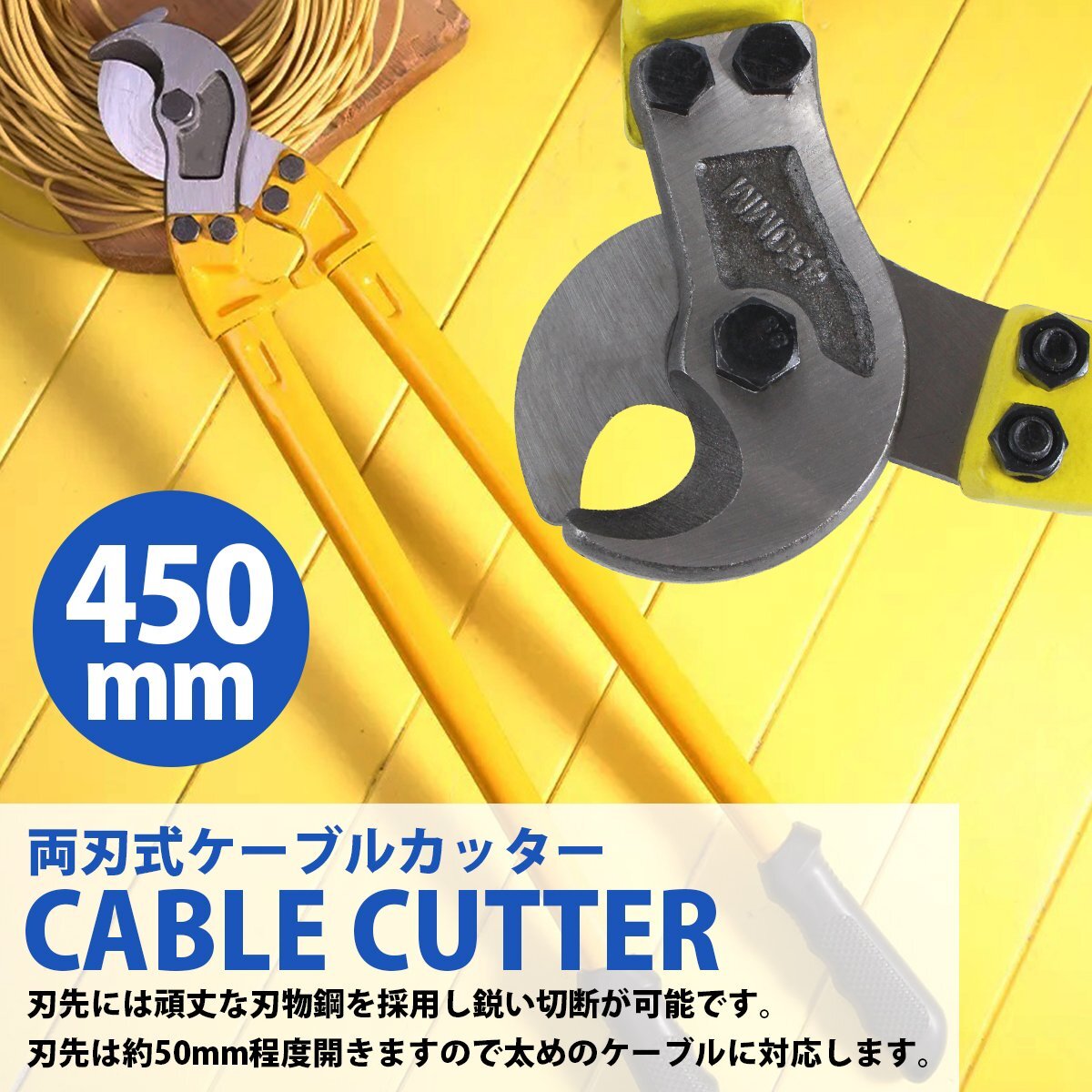両刃式 ケーブルカッター 450mm/45cm ワイヤーカッター ロープ 番線カッター 切断50mm ケーブル 線 配線 電線 工事 整備