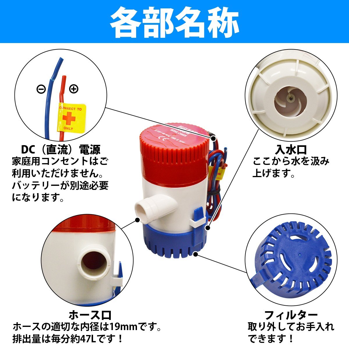 【送料無料】ビルジポンプ 750GPH 12V 船 ボート 水 排水 水中 小型 ポンプ 海水 淡水 花 ガーデニング 雨水 船 ボート 毎分47.3L