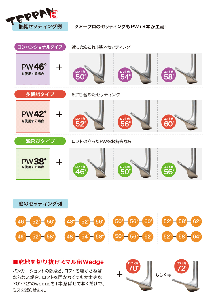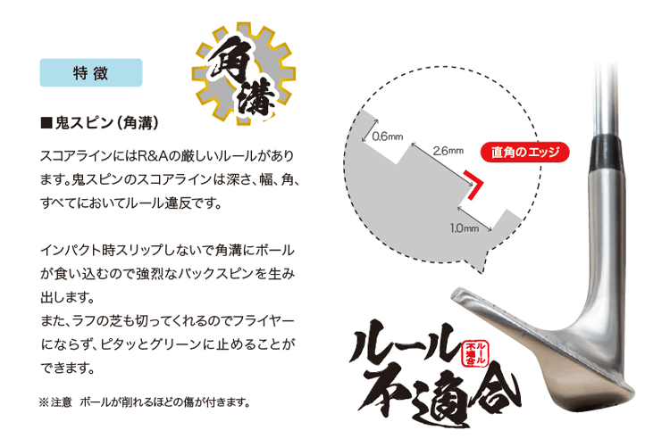 【商品特徴】 <喰いついたら離さない。角溝鬼スピンWedge 2本セット> 海外の製造工場と直接打ち合わせを行い一貫製造、 直接輸入することで中間コストを徹底的に削減し驚きの価格を実現しました。 これからゴルフを始める方や、お手軽に買い替えをお考えの方に品質の安全性と選べる楽しさを提案いたします。 ■鬼スピン(角溝) スコアラインにはR&Aの厳しいルールがあります。 鬼スピンのスコアラインは深さ、幅、角、すべてにおいてルール違反です。 インパクト時スリップしないで角溝にボールが食い込むので強烈なバックスピンを生み出します。 また、ラフの芝も切ってくれるのでフライヤーにならず、ピタッとグリーンに止めることができます。 ※注意 ボールが削れるほどの傷が付きます。 ■オーソドックスなストレートネック形状 スクエアに構えやすいオーソドックスなストレートネック形状なので、ラフや芝に沈んだボールでも打ちやすいヘッド形状です。 また、フェース面は少し大きめなので、安心感もあり、ソール幅は狭めなので抵抗が少ない分、操作性に優れています。 バウンスがしっかりついているので、バンカーショットのエクスプロージョンが楽にできます。 【商品詳細】 ●状態:新品・未使用品 ●ヘッド素材:SUS431ステンレスヘッド / サテン仕上げ ●ロフト:56度・60度(2本セット) ●シャフト:オリジナルスチールシャフト ●グリップ:オリジナルTPRグリップ ※撮影時の光量の具合や、ご覧いただいております画面環境によりまして、実際の商品と若干色味が違う場合がございます。 ※商品詳細のスペック値はメーカー表記の数値となりますが、個体差による若干の公差がございます。 ※出品商品以外の組み合わせも可能です。ご落札後、取引メッセージにてご連絡をお願い致します。