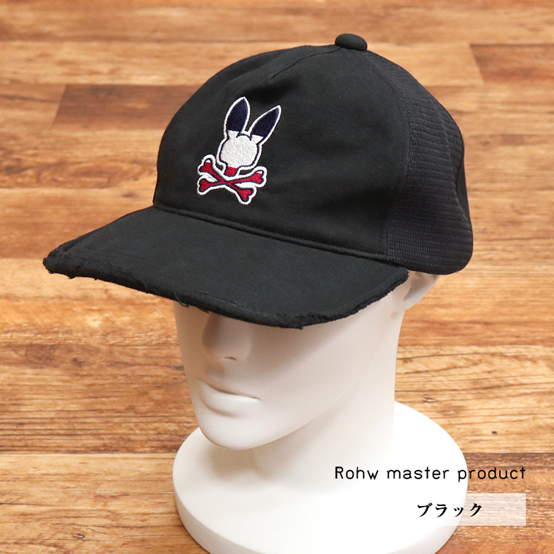 1円/Rohw master product × Psycho Bunny/ダメージ ワッペン キャップ 日本製 サイコバニー ゴルフ 新品/黒/ブラック/jh274/