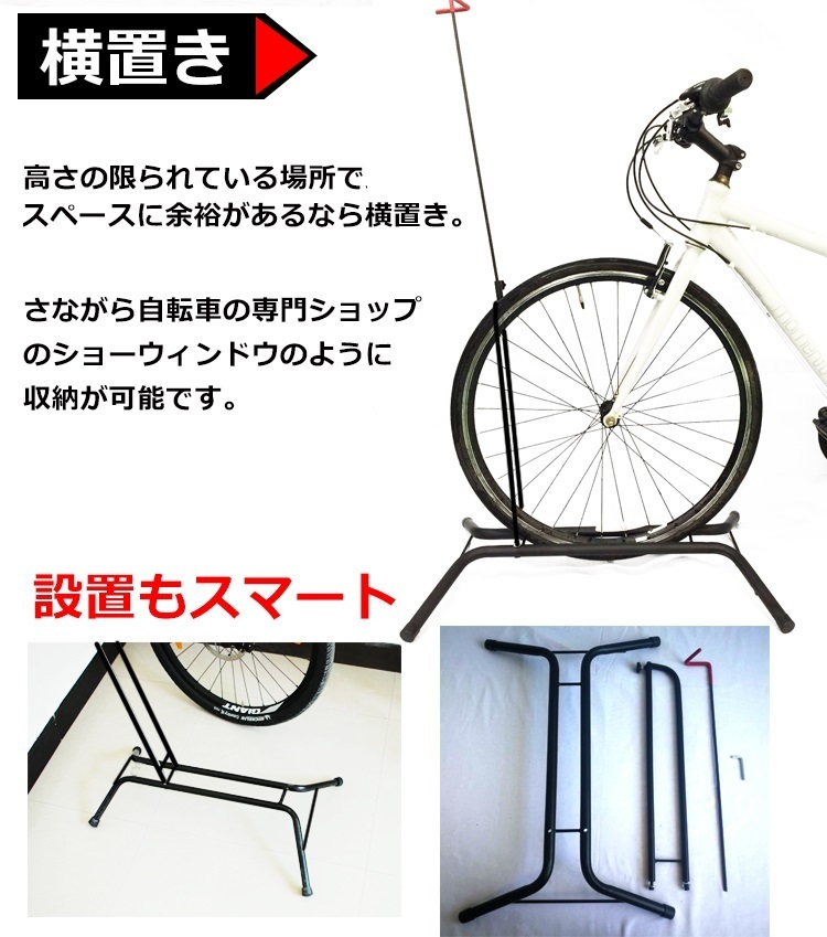 ■横置きは土台に置くだけなので、自転車の設置が簡単です!