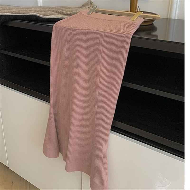 レディース マーメイド スカート ニット きれいめ ボトムス ロング 細め バックスリット フリー ピンク