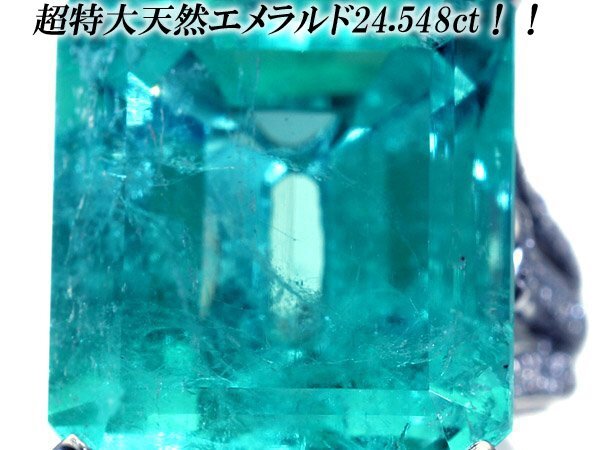 1円~【ジュエリー極】超極上品!超特大天然エメラルド24.548ct&天然ダイヤモンド0.78ct 超高級Pt900リング h8036ikox【送料無料】