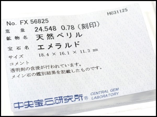 なんと1石で24.548ctもの超特大サイズの極上天然エメラルドで御座います!