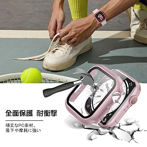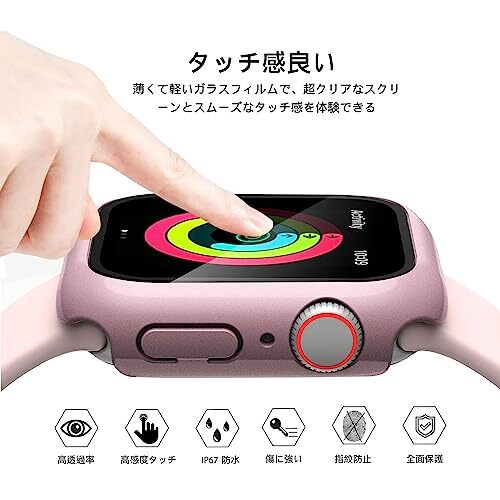 【全面保護】この製品はPC+ 強化ガラス素材を採用して、日常生活での衝撃から Watch を保護します。硬度 9H の強化ガラスで、超クリアな画面を提供して、なお画面の損傷を防止および回避し、 Watchをしかっり保護します。