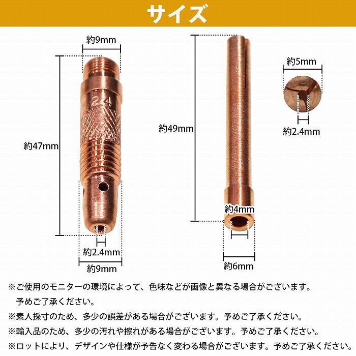 【送料250円】『2.4mm 5個セット』 TIG溶接 トーチ 先端 『コレットボディ/コレット』溶接 スペア 予備 交換 消耗品 コレットホルダー φ