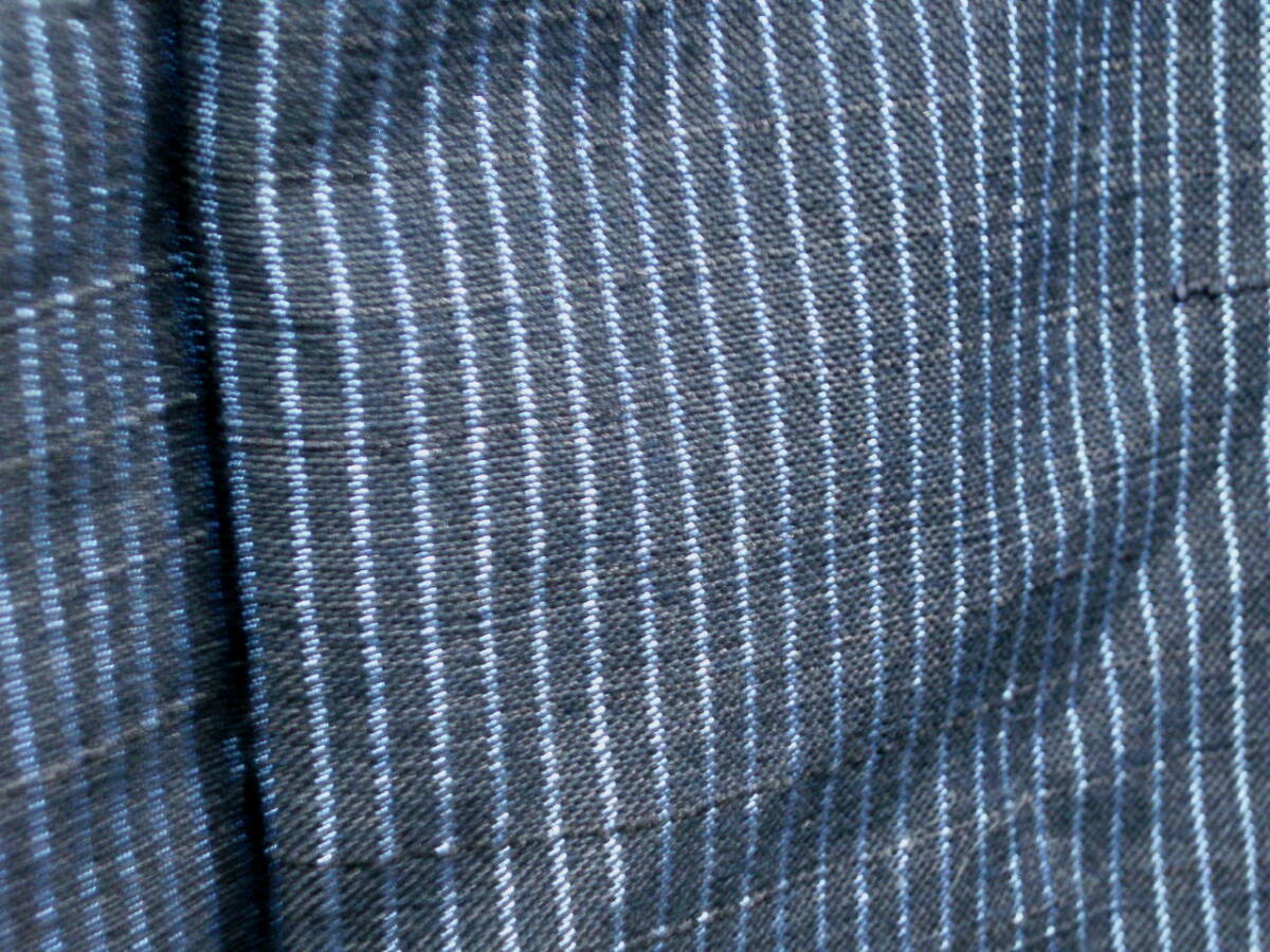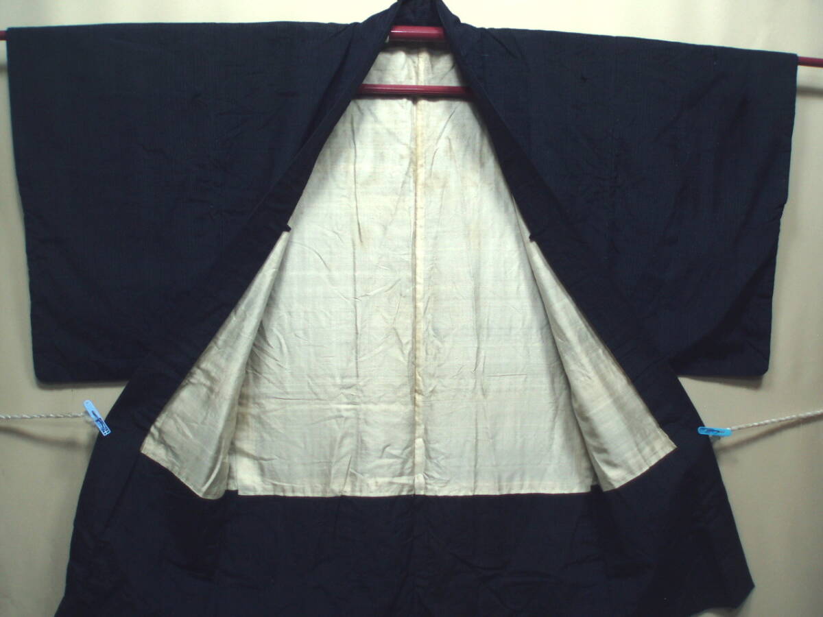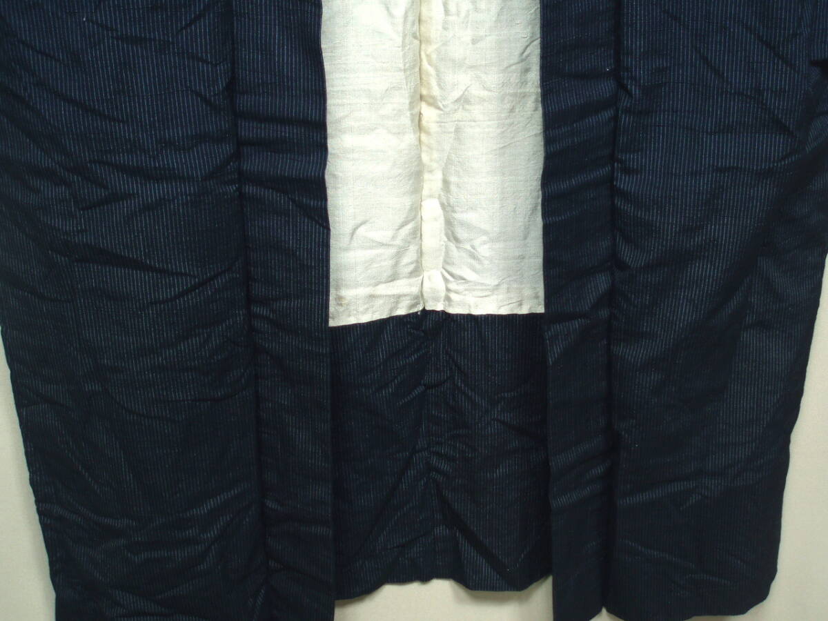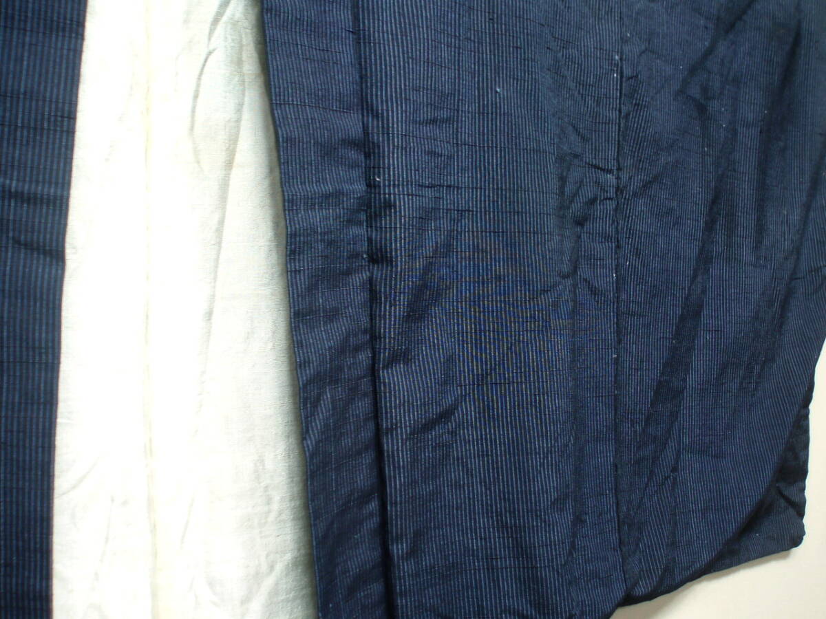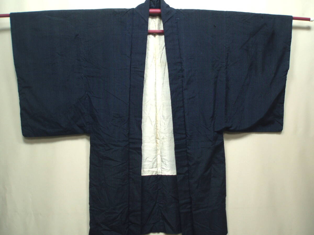 "" "M58031【生地取り用 リメイク用 着用用 古布 綿 藍 縦縞絣 綿正絹 交ざり】男 羽織" |