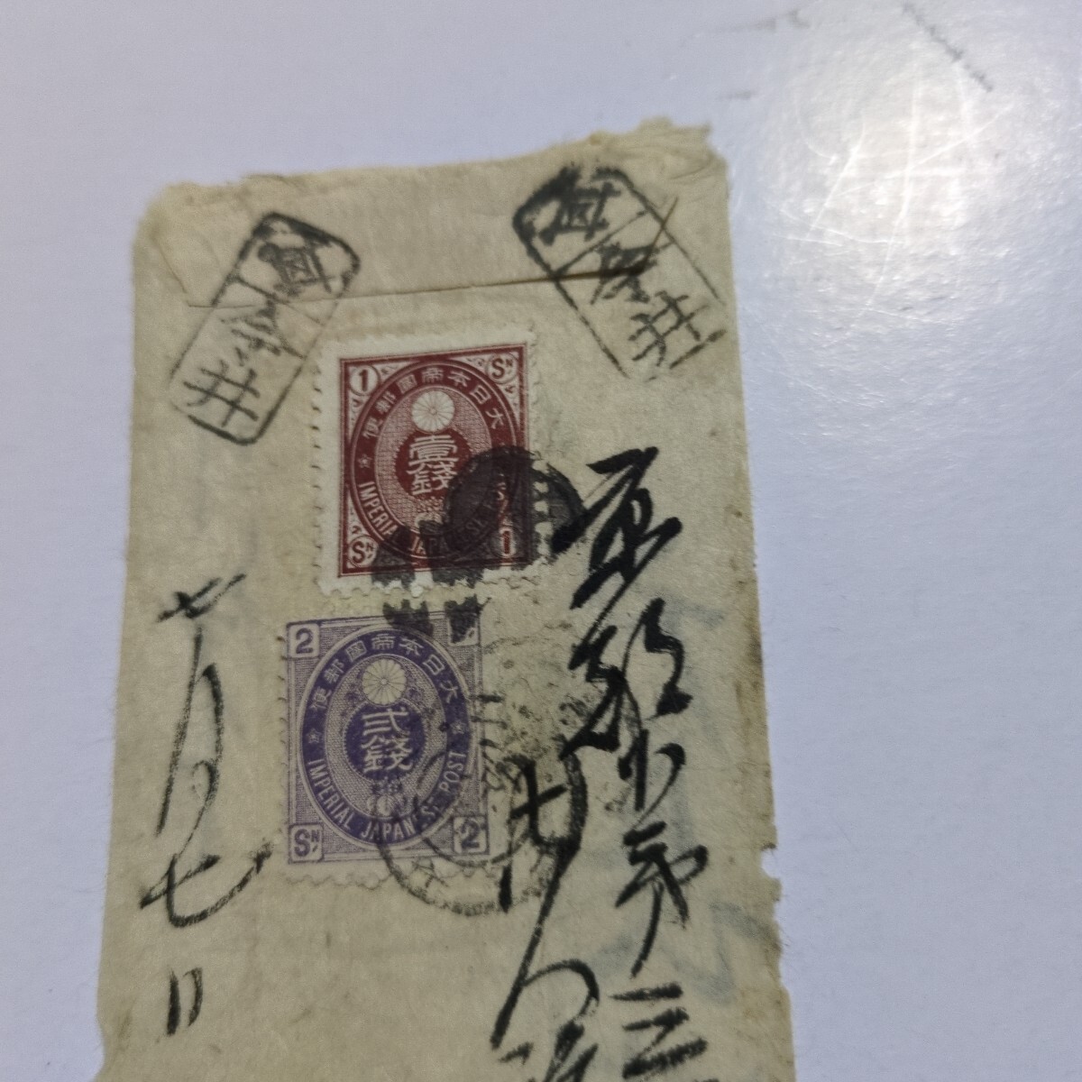 □切手 旧小判1銭、2銭 二重丸印京都