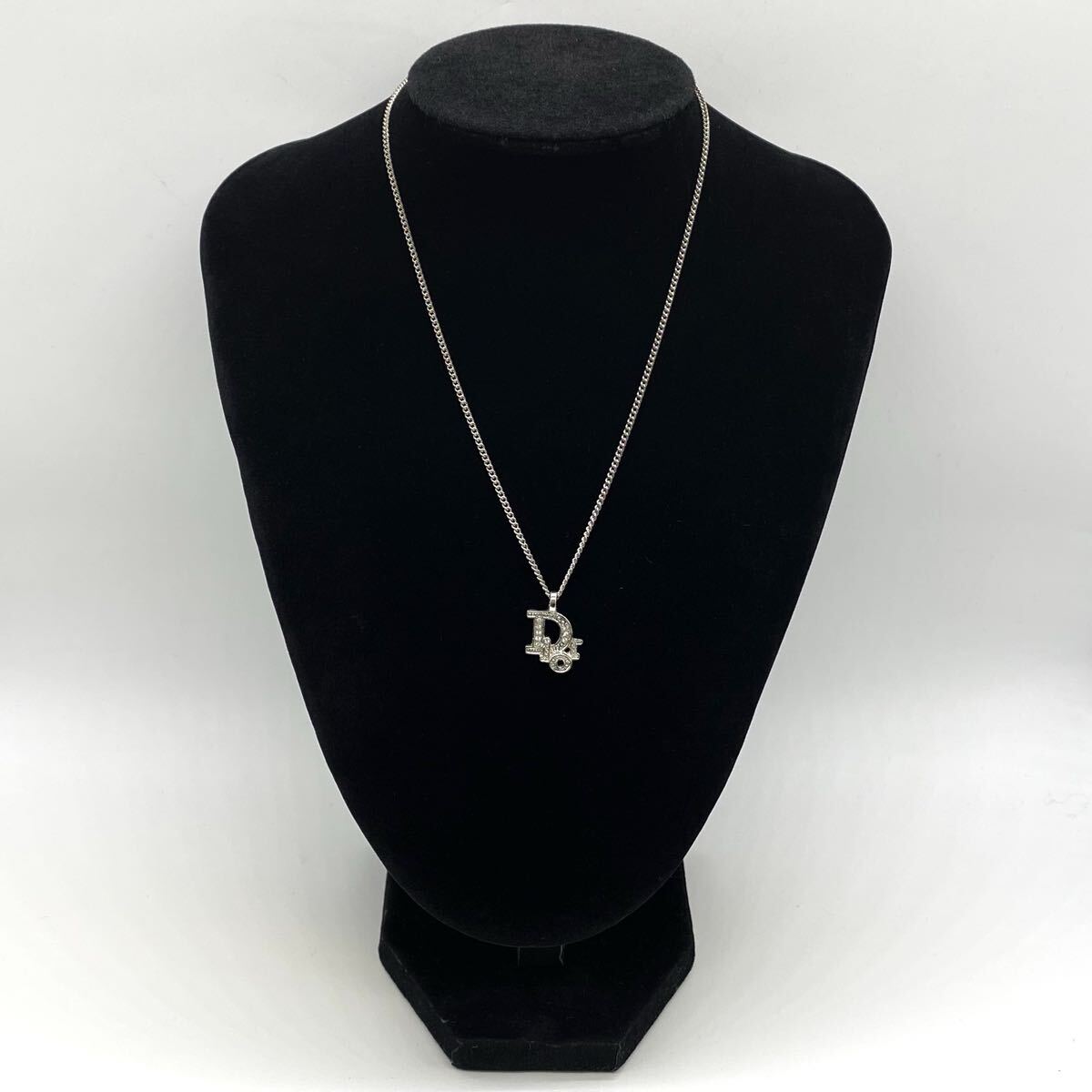 【11G4】1円スタート Christian dior クリスチャンディオール ネックレス ロゴ レディース ラインストーン 全長 約40cm 重さ 約5.8g