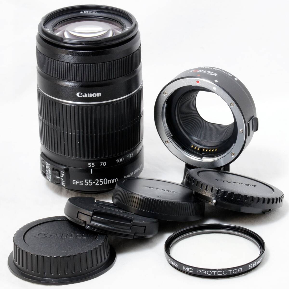 ★美品★Canon キャノン EF-S 55-250mm F4-5.6 ISⅡ & Canon EF-EOS M用マウントアダプター VILTROX製 初心者 おすすめ