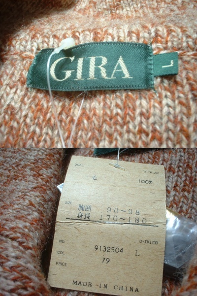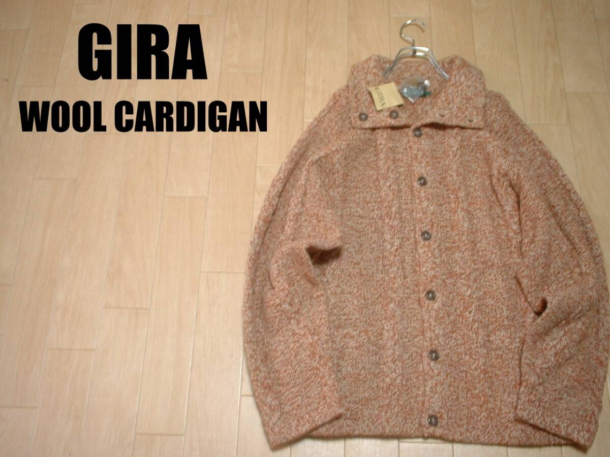 新品タグ付きGIRA霜降り杢カラーウールカーディガン未使用L正規ギラグッドカラーセーターケーブルニットフィッシャーマンズカウチン