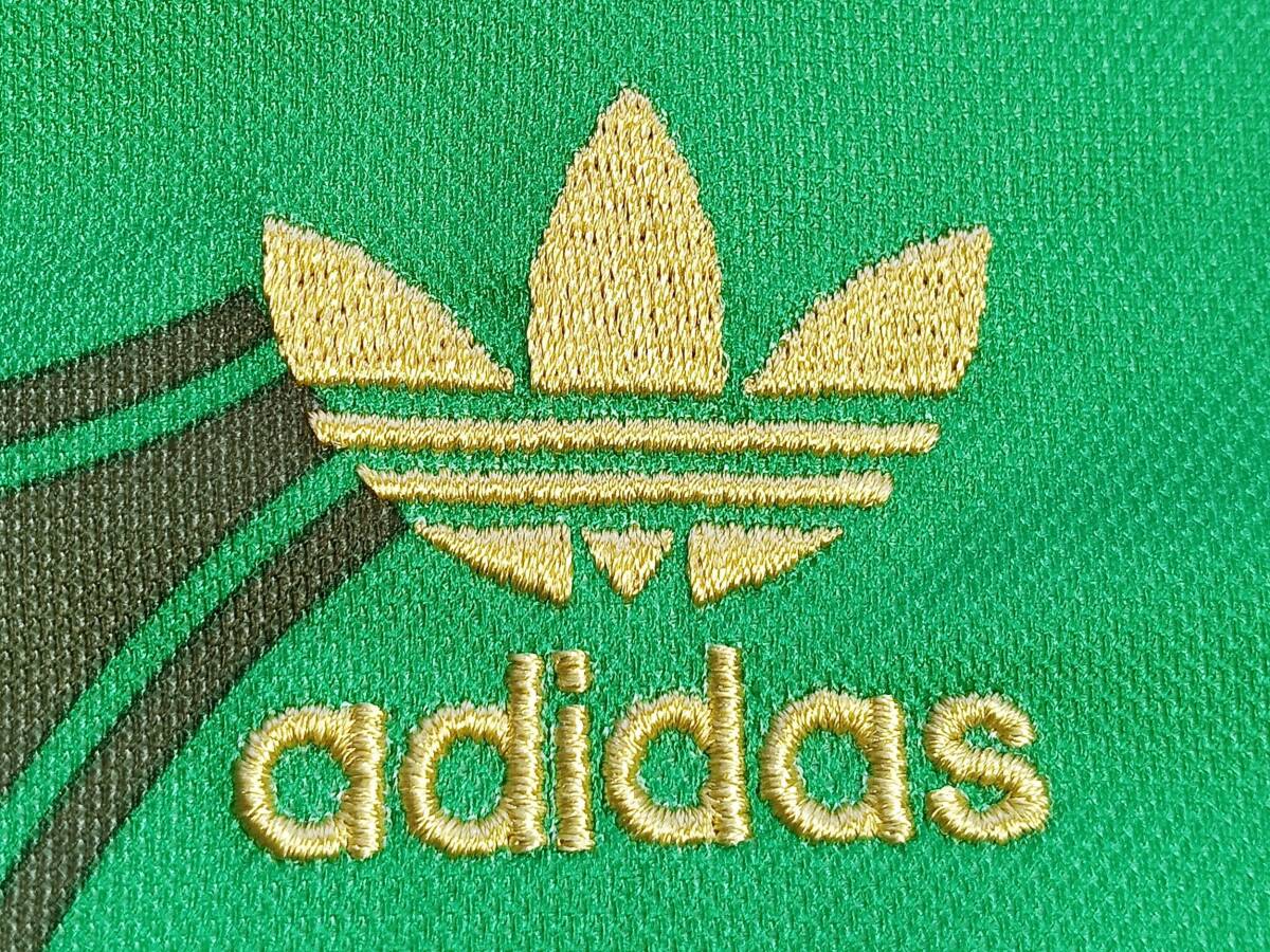 右胸にアディダス「トレフォイル」のゴールドロゴが刺繍されています。