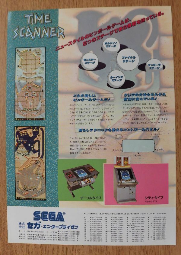1987年  セガ・エンタープライゼス【 タイム スキャナー(TIME SCANNER)】 A4サイズのカタログ1枚