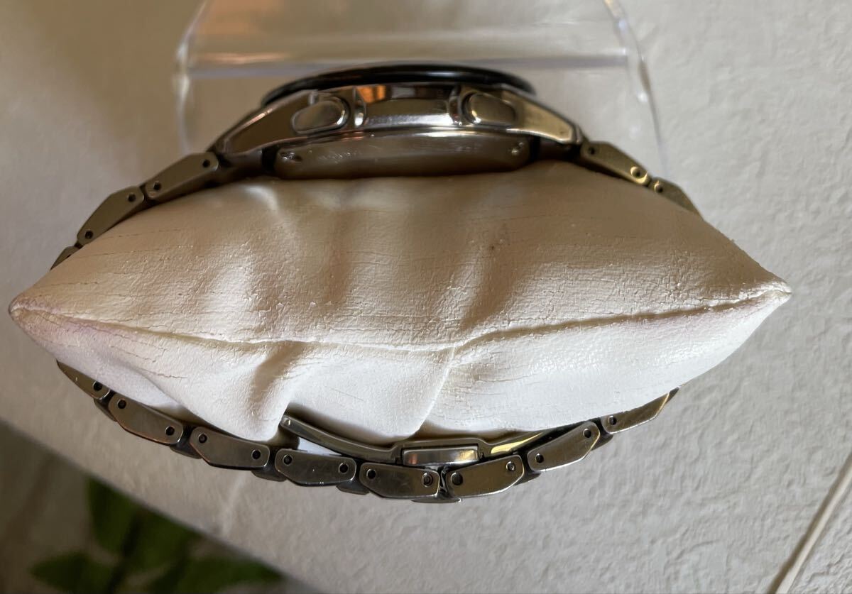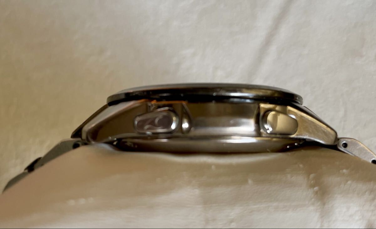 使用状況 :日常生活使用状の擦り傷ありガラス面は目視では傷はないようです。アラーム機能も正常に音が鳴っています。付属品は取説のみ他はありません時計本体バンドバックルのみ腕時計内回り18cm程度です。