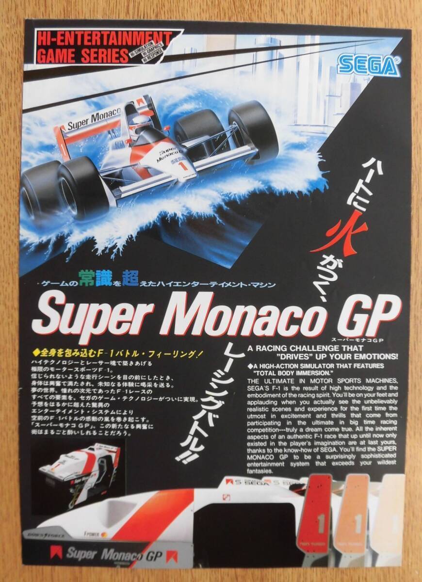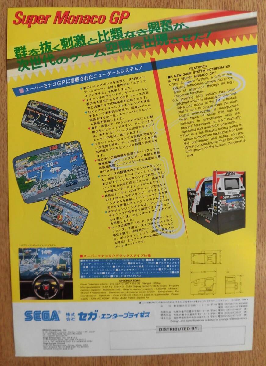 1989年 セガ・エンタープライゼス 【 スーパー モナコ GP(Superco GP ) 】A4のカタログ1枚・レーシングバトル・三つ折り跡があります