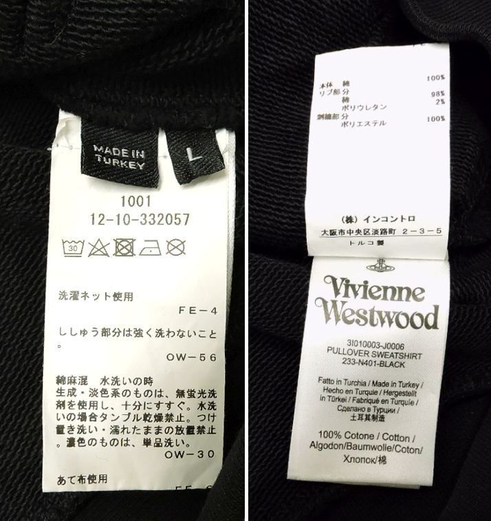 商 品 名 トルコ製 ヴィヴィアンウエストウッド オーバーサイズ オーブ刺繍 プルオーバー パーカー 3I010003-J0006 L ブラック 中古品[C124L903]
