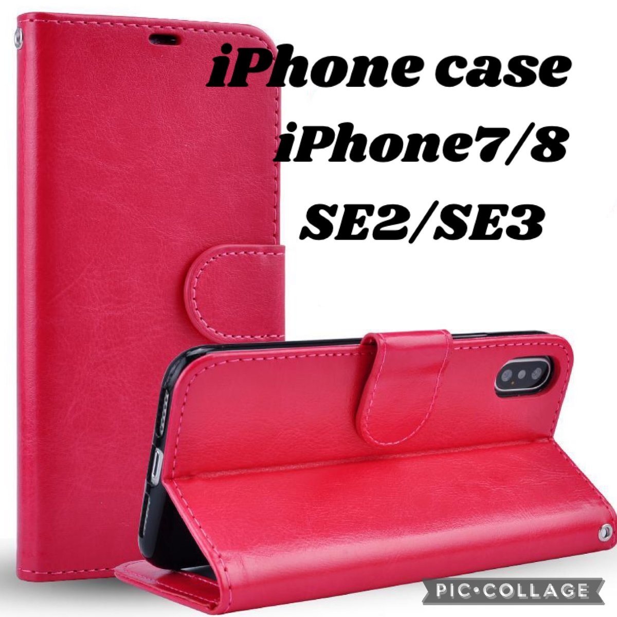 【iPhone8/7/SE(第2,3世代):ローズピンク】iPhone ケース 手帳型 液晶強化ガラスフィルム 2点 セット 保護フィルム 手帳 スマホケース A58