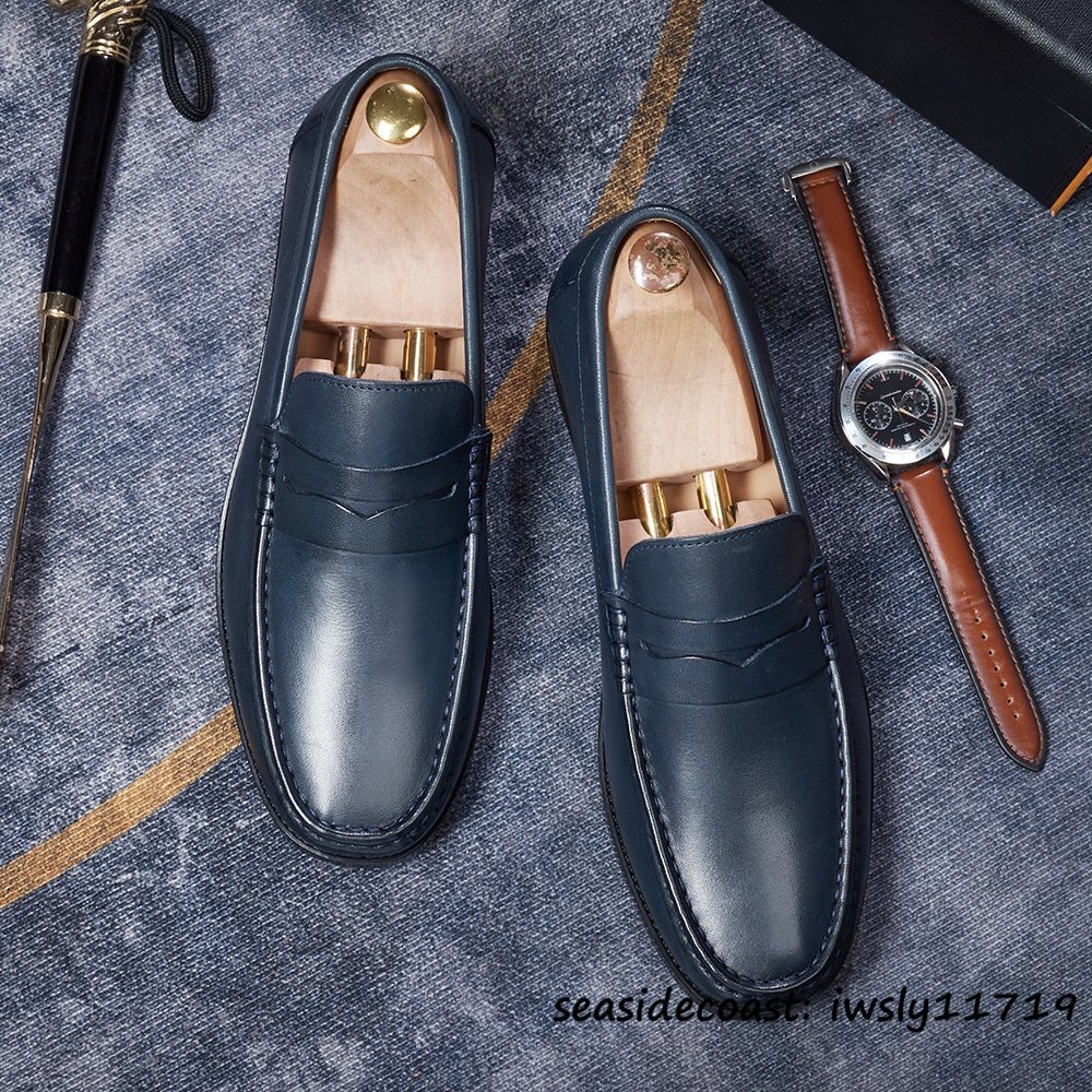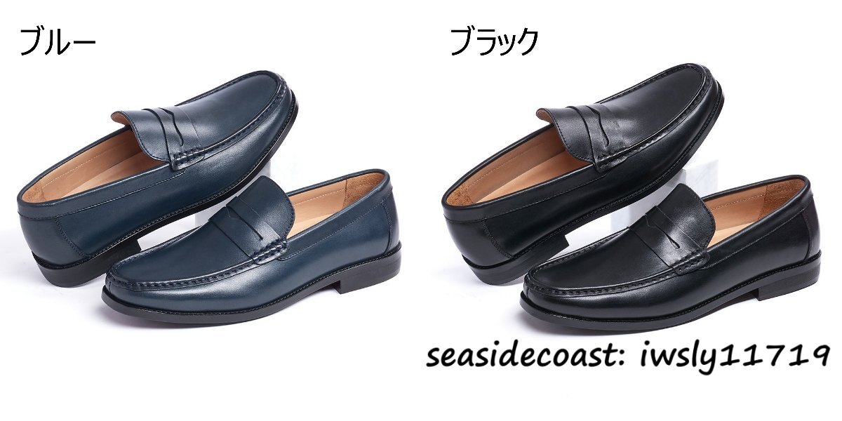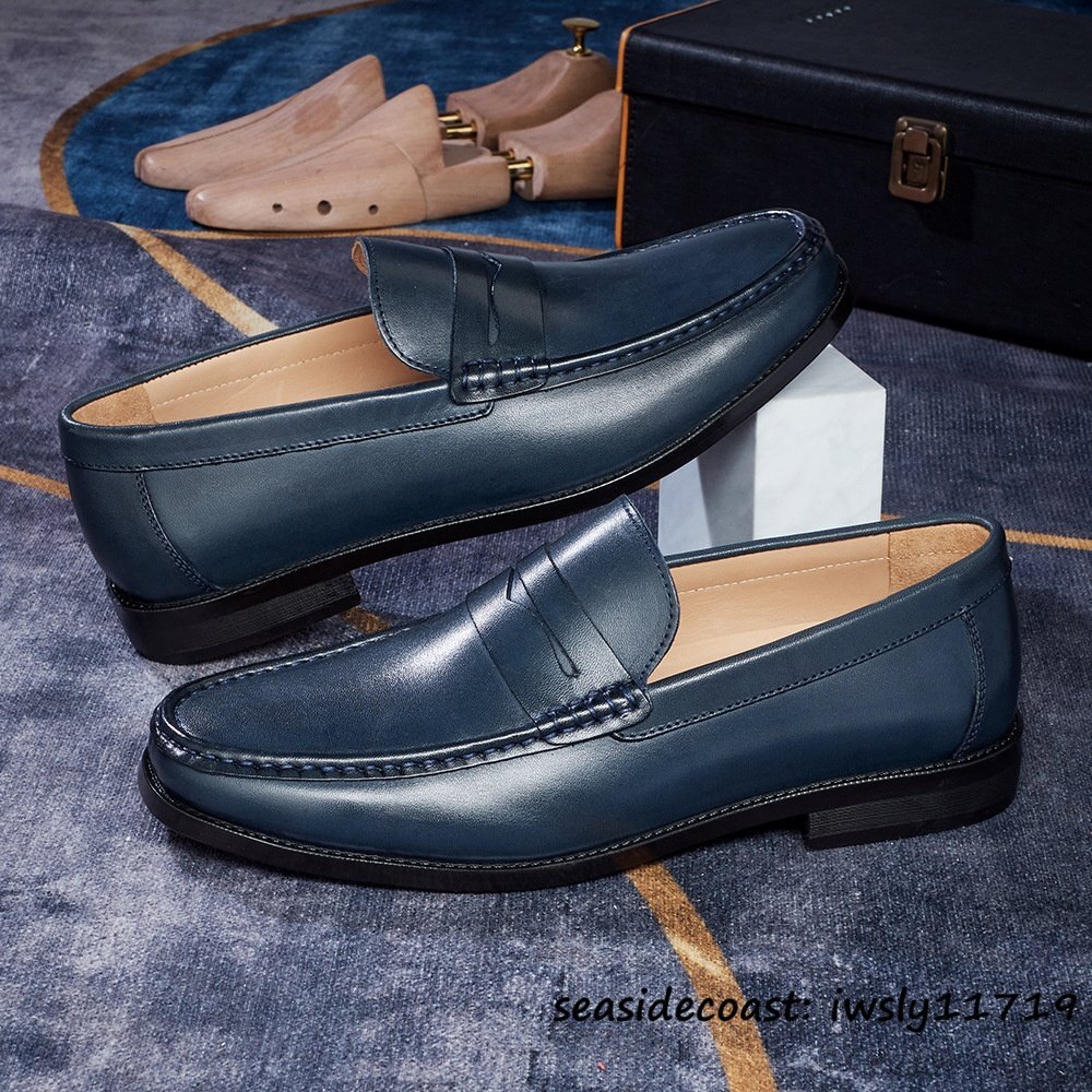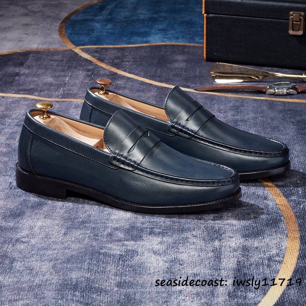 定価9万◆メンズ 本革 レザーシューズ 革靴 職人手作り ローファー スリッポン ビジネスシューズ 牛革ドライビングシューズ ブルー 26.0cm