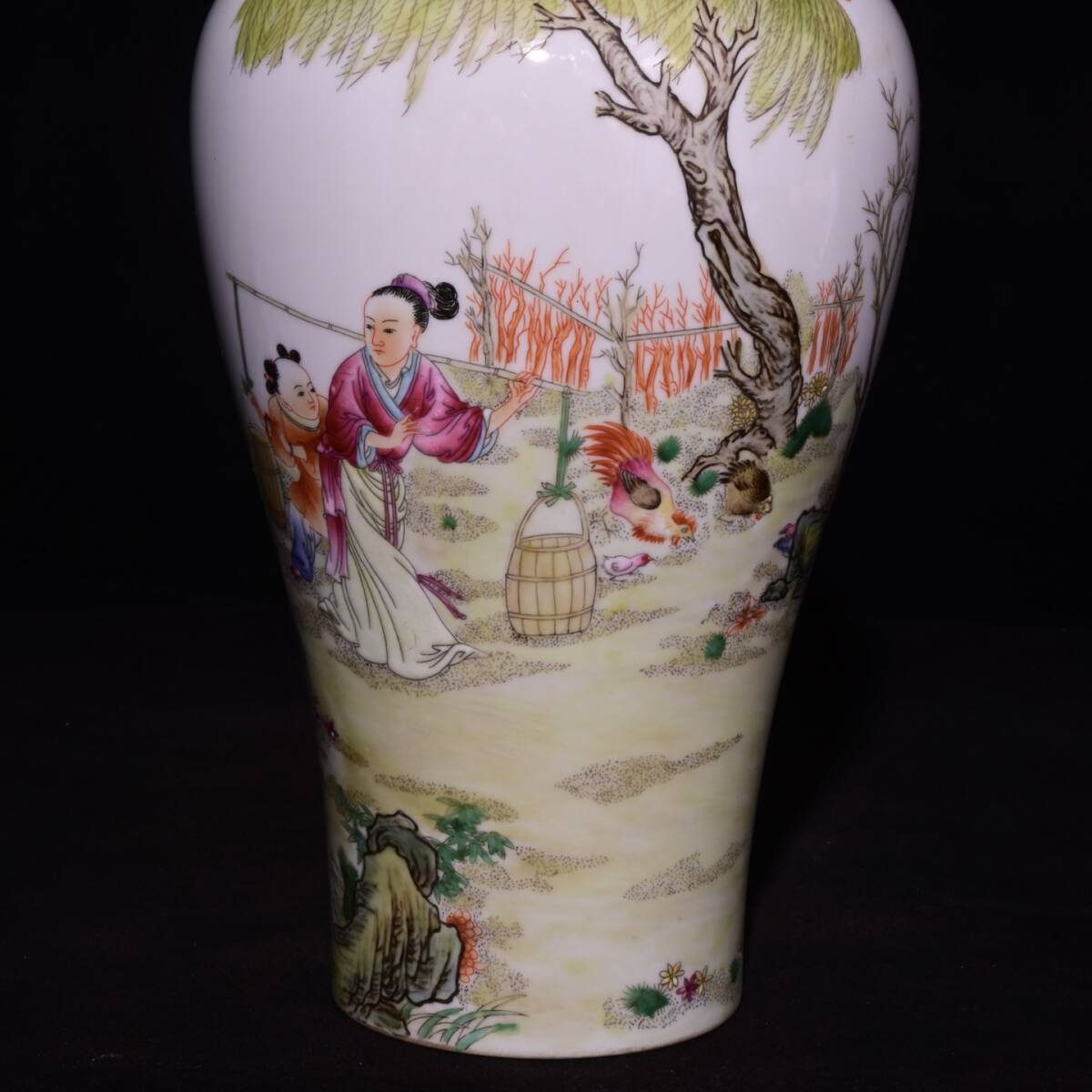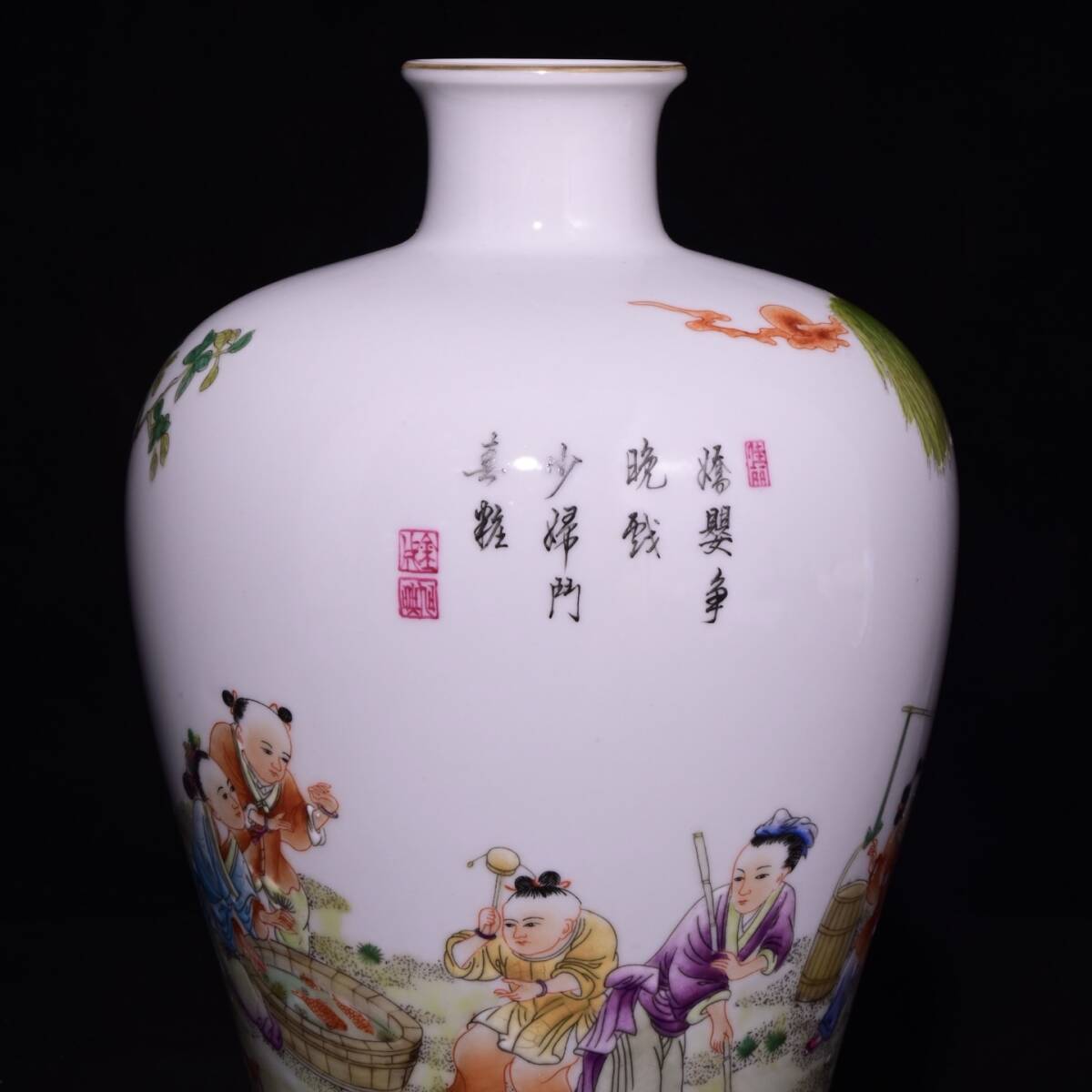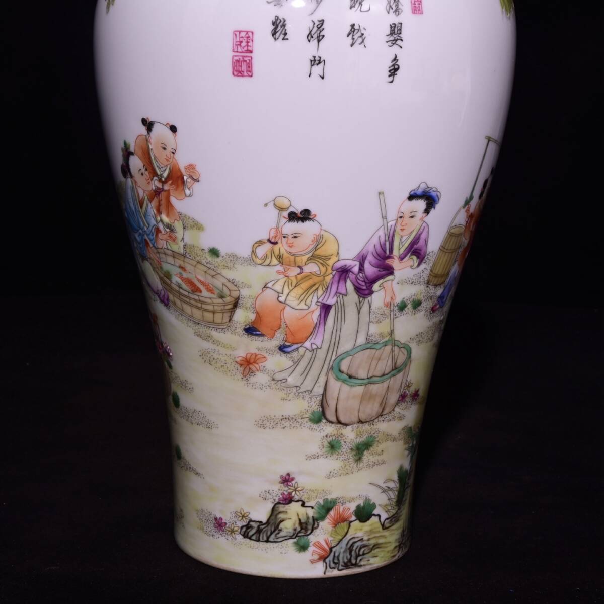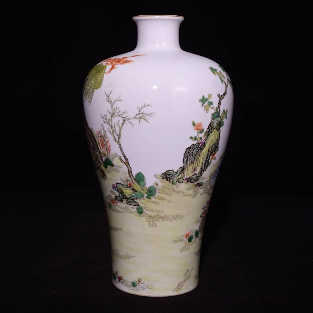 館蔵 清時代 雍正御製 琺瑯彩 人物紋 梅瓶 花瓶 花器 一対 古陶瓷 陶磁器 貴重 稀少 中国古美術 古美味 蔵出
